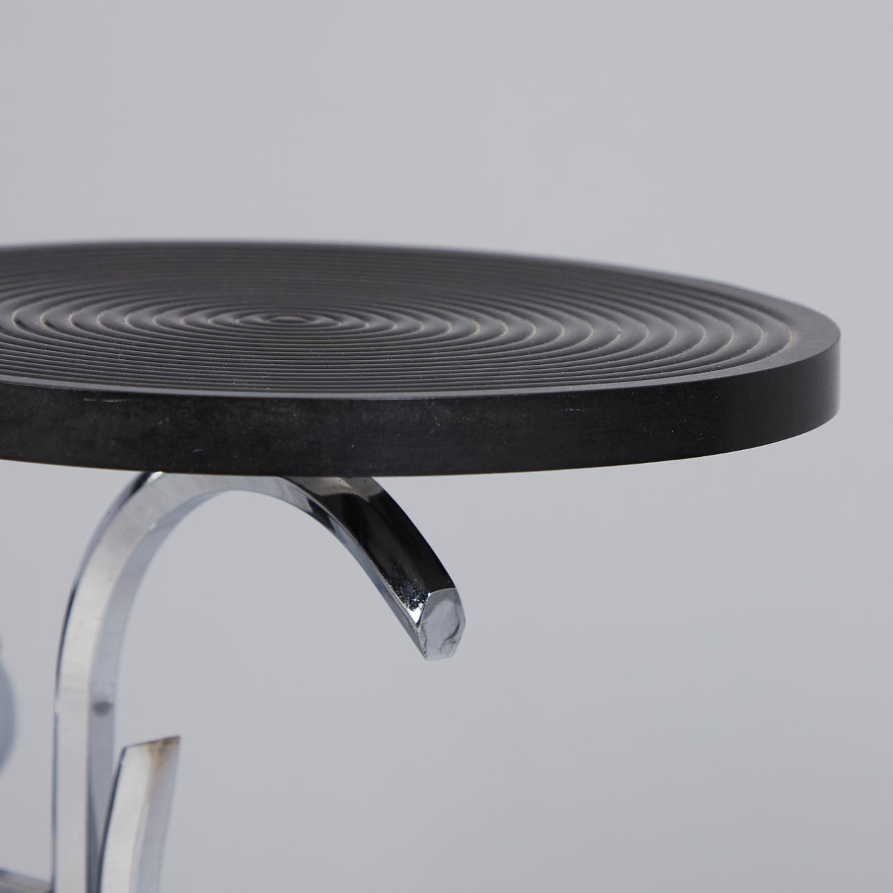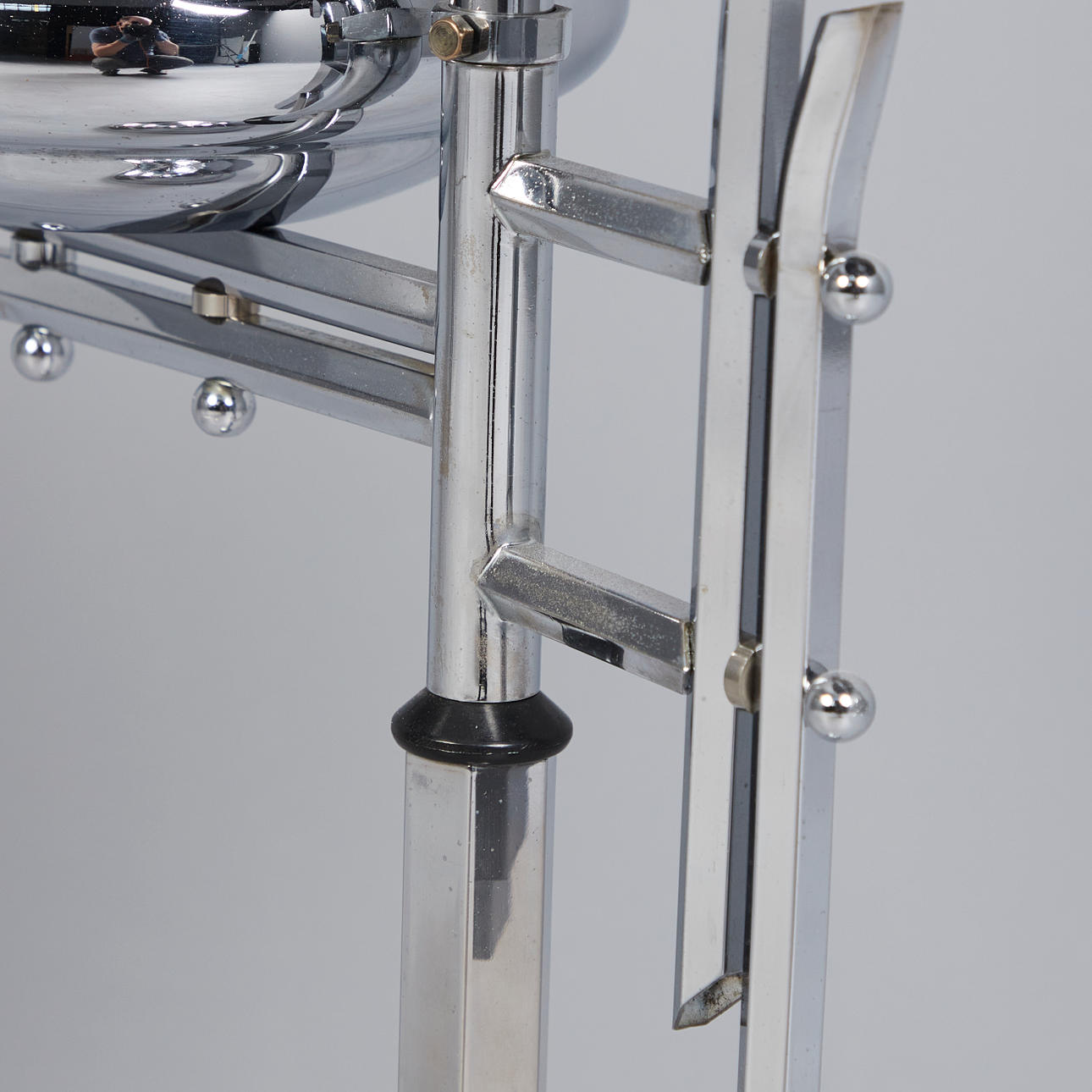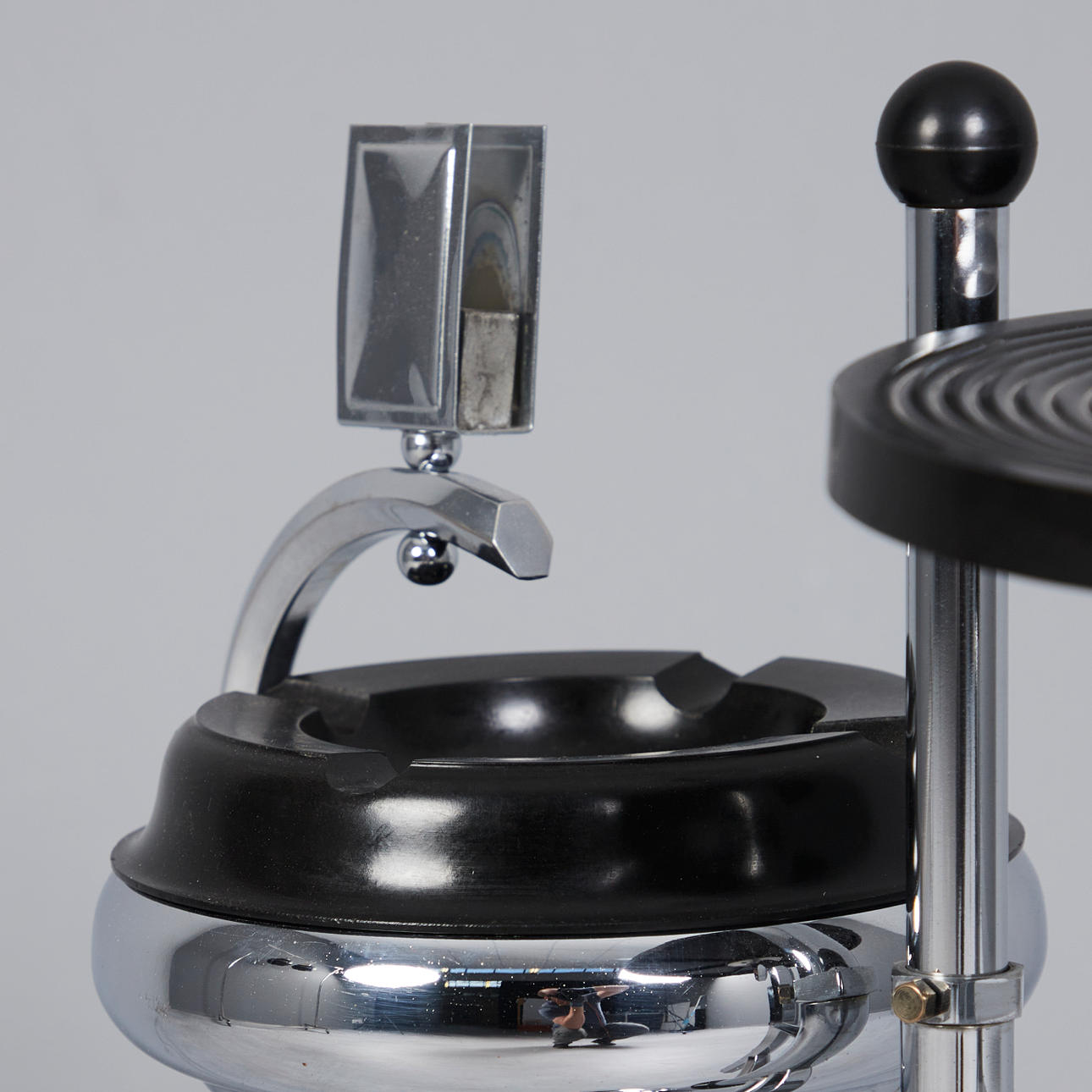 Rotierbare, zweiteilige Konstruktion aus verchromten Metall mit Ascher und runder Ablagefläche, H.72cm, B.50cm, T.25cm.