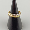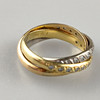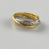 Trinity-Ring mit Diamanten - dreifarbig: Weiß-/Rosé-/Gelbgold 750/000 (18 K), gestempelt, ausgefasst mit 29 kleinen Achtkantdiamanten, Gewicht ca. 7,6 g, Ring-Dm. ca. 17,2 mm.