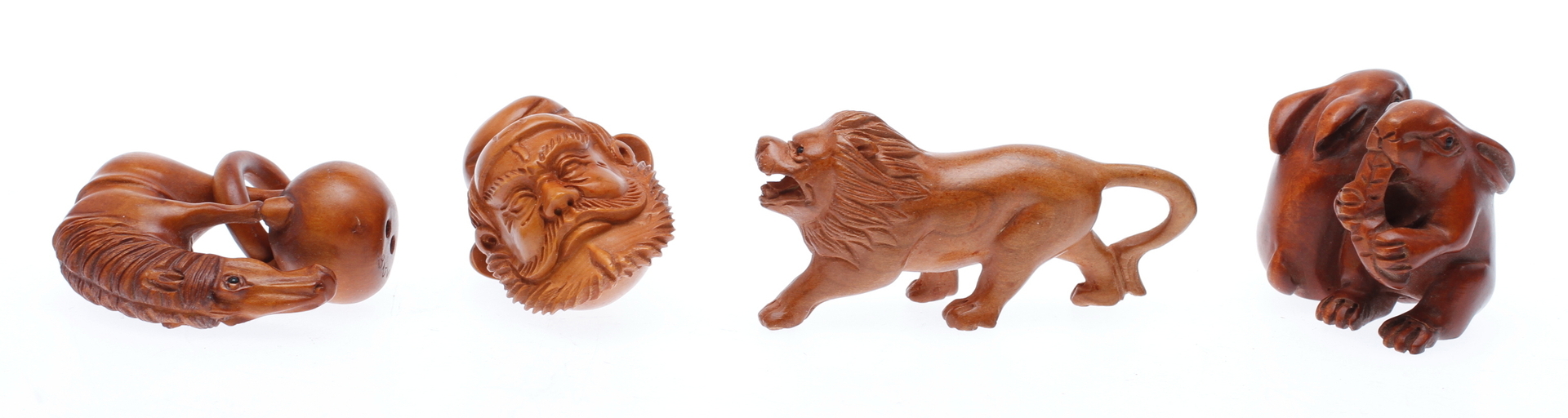 35611. Netsuke Buxbom, China 1900 4-tlg.