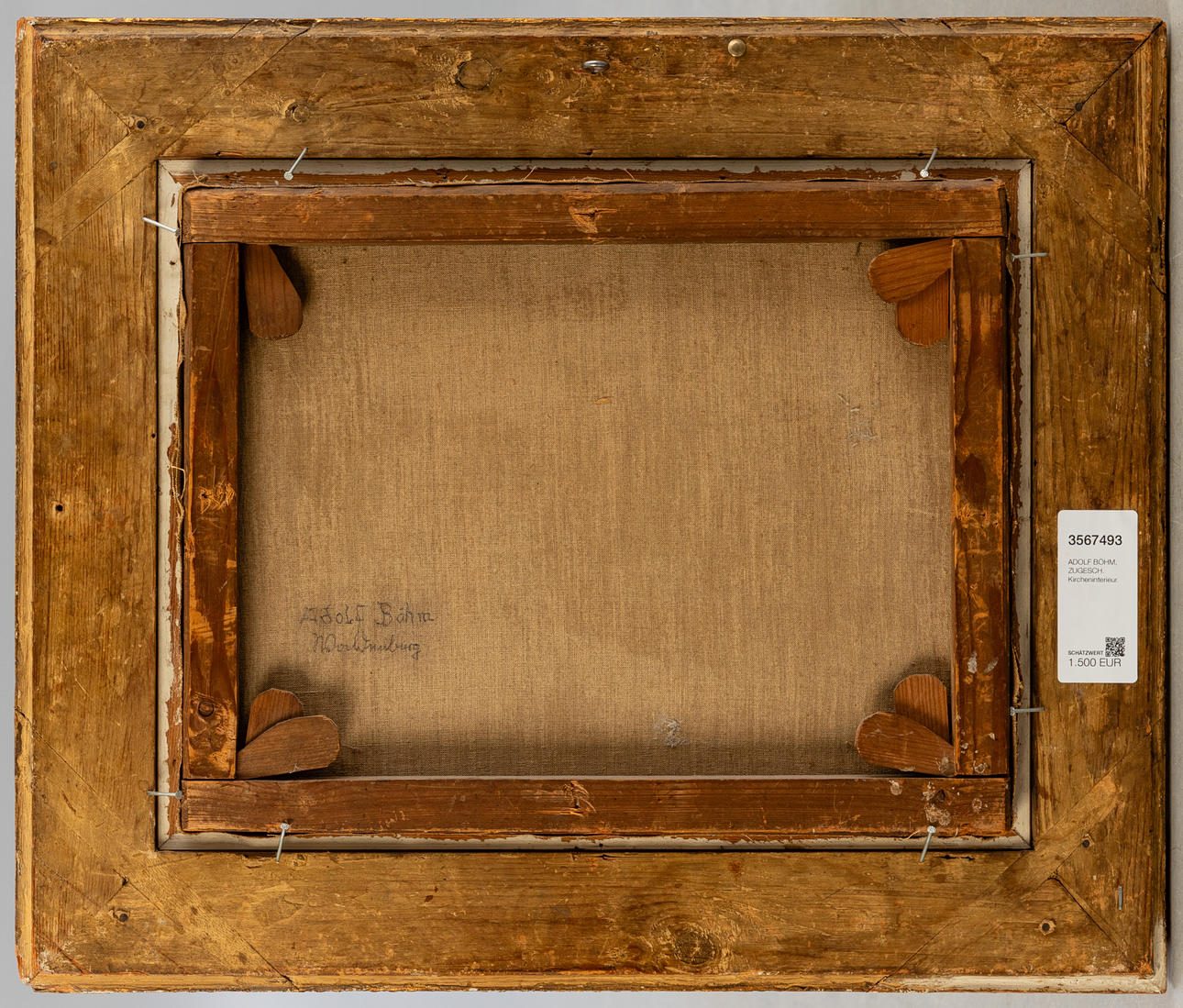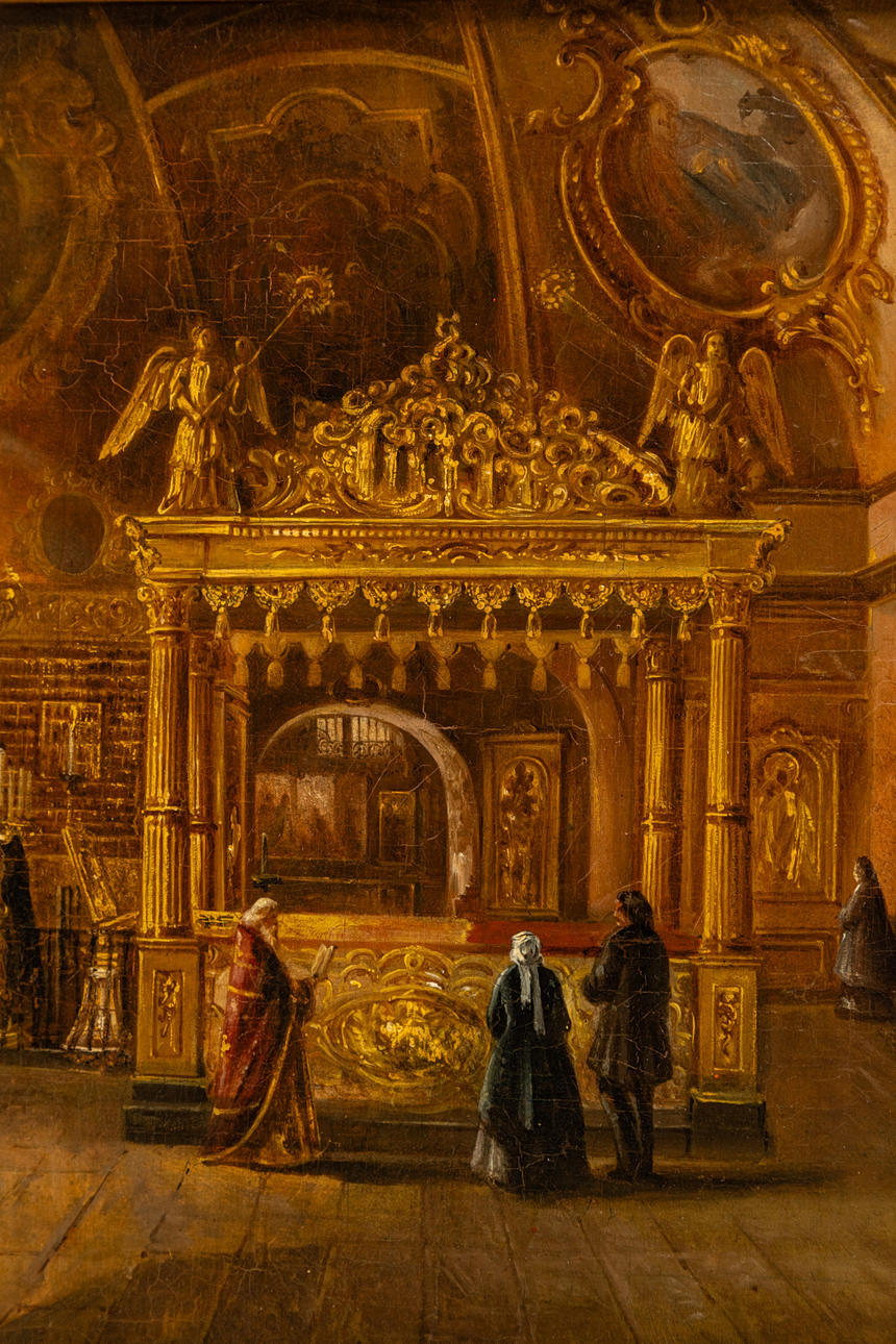 Zugeschrieben Adolf Böhm (1844-nach 1891), Kircheninterieur, Öl auf Leinwand, doubliert, rückseitig von fremder Hand bezeichnet 'Adolf Böhm, Waldenburg', ca. 33 x 43 cm, mit Rahmen ca. 50 x 60 cm.