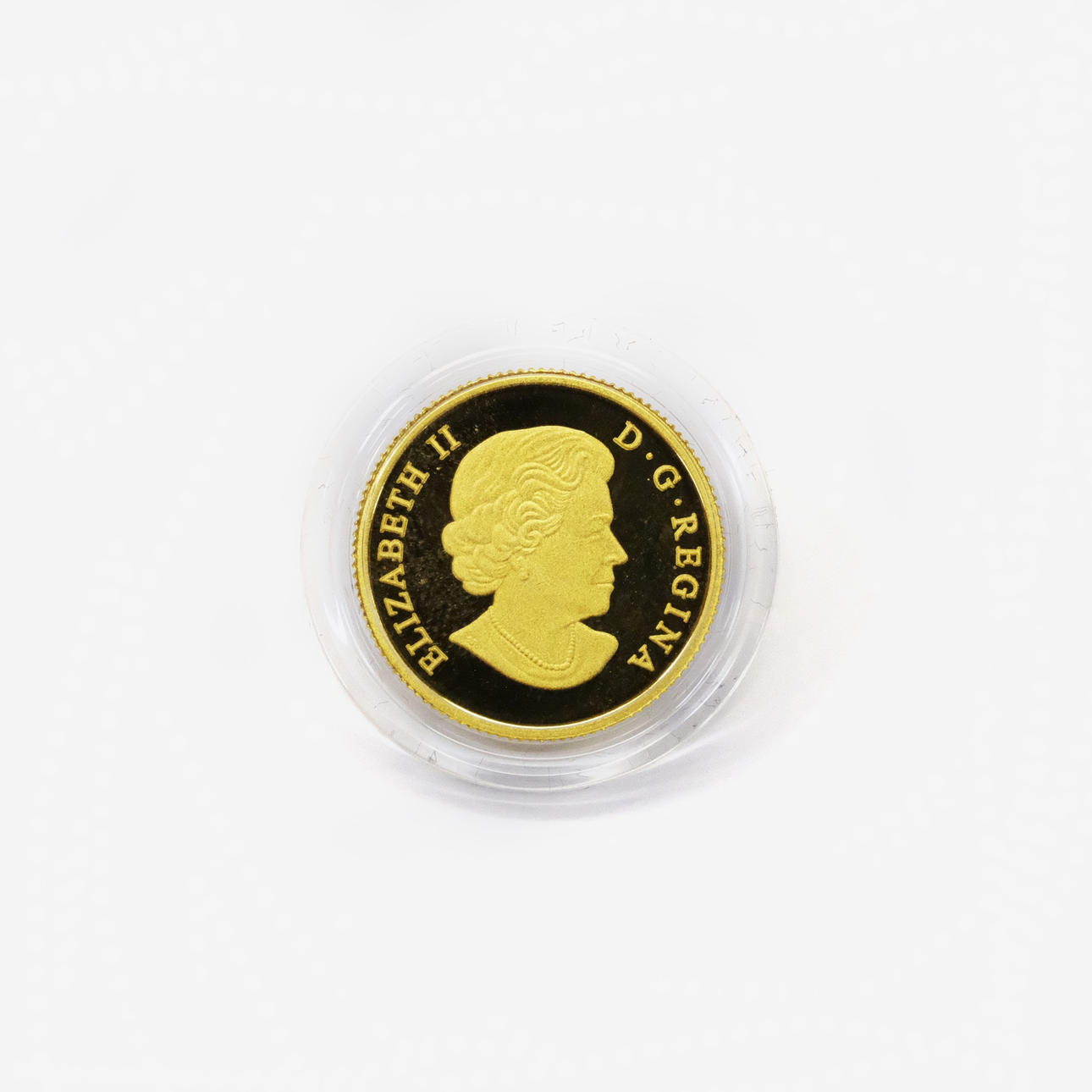 24-karätiges Gold, Gewicht 3,14 Gramm, Durchmesser 20 mm, mit Gehäuse und Gehäuse.