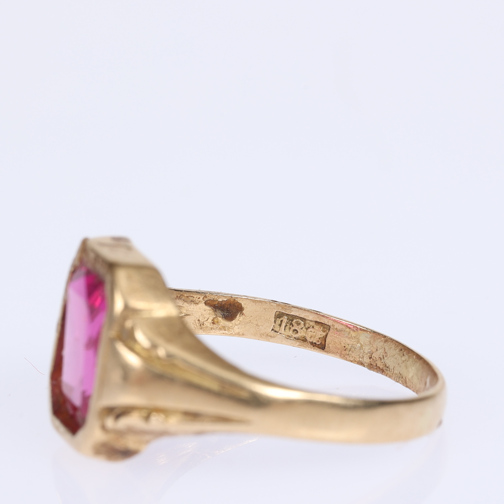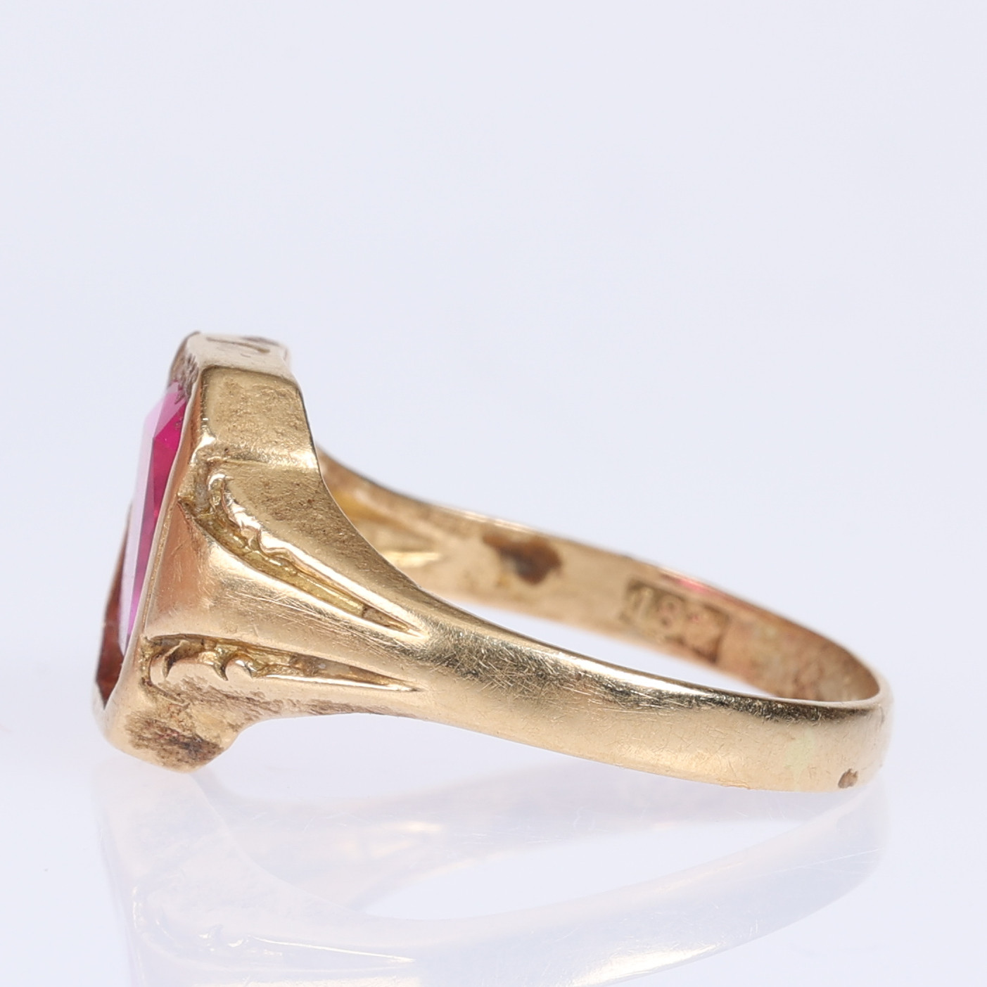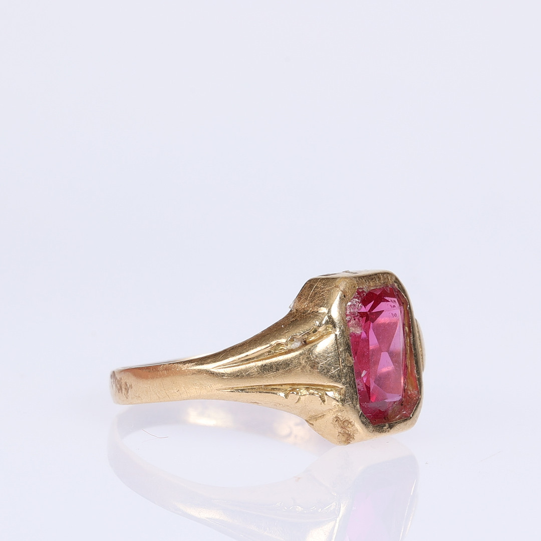 3569021. RING, 18 K Gold, roter Stein.
