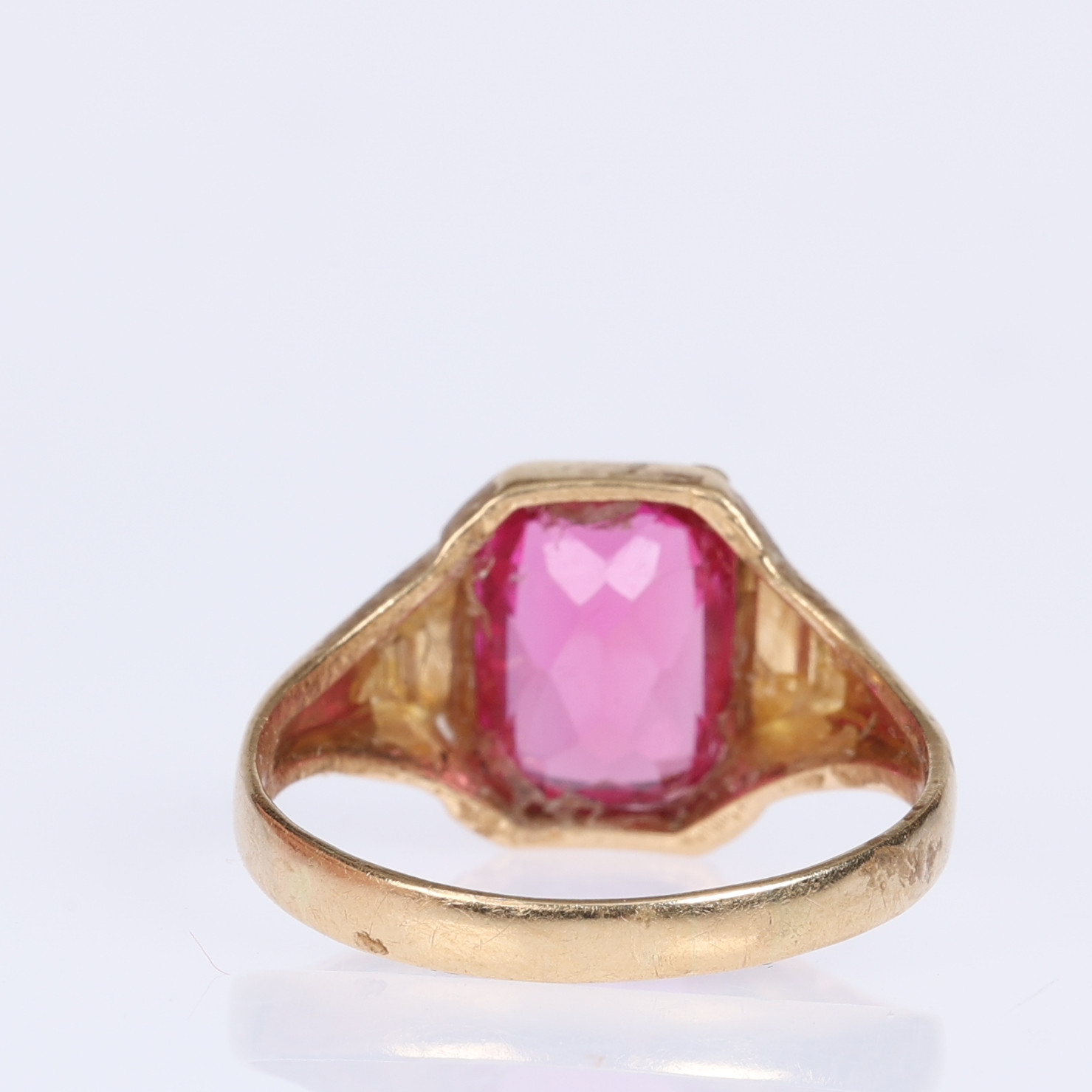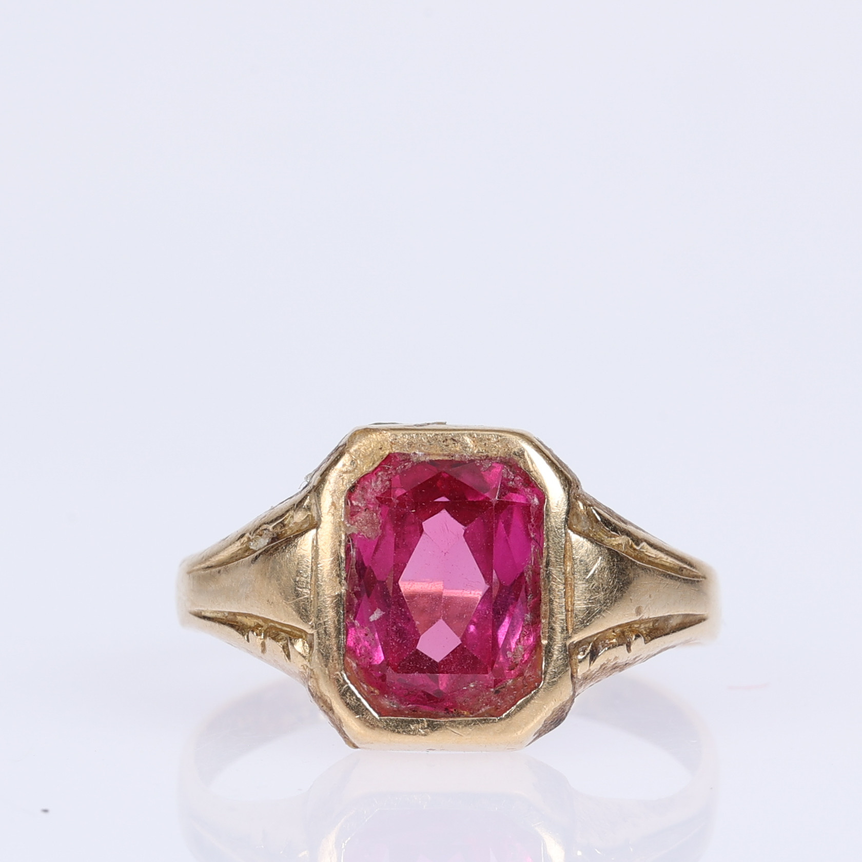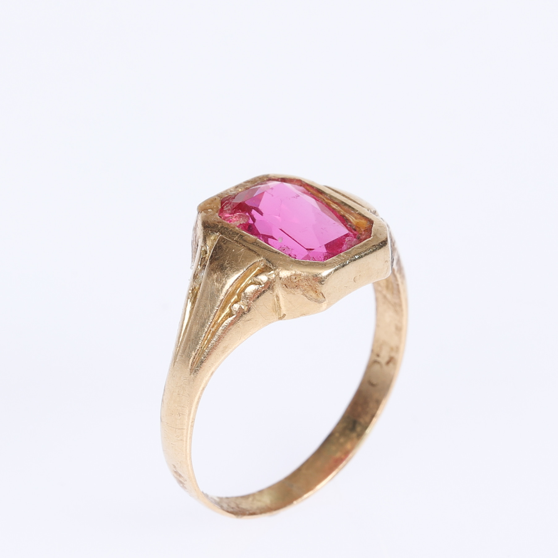 3569021. RING, 18 K Gold, roter Stein.