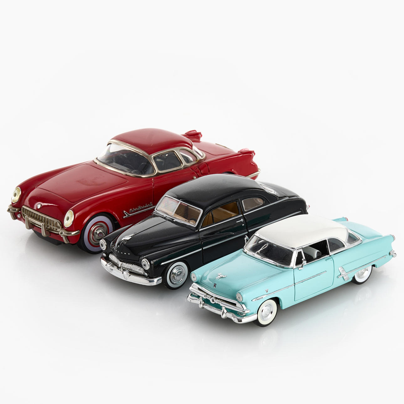 Bestehend aus Fifties Vorvette Hardtop Typ 1953, in Originalverpackung, 1949 Mercury, 1953 Ford Victoria. Länge 24, 21 Trap. 19 cm.