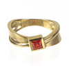 Madeira Citrin Ring, punziert Gelbgold 333 (8 Karat), ca. 3,4 Gramm, die gegenläufig geteilte Ringschiene ist mit einem Madeira Citrin von ca. 4 x4 mm im Carréschliff in einer Zargenfassung besetzt, RG 55, InnenØ 17,5 mm.