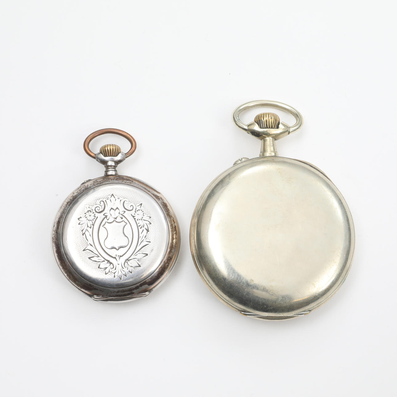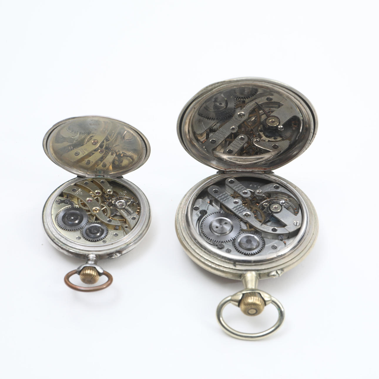 3578016. TASCHENUHR, 2 STÜCK, SILBER/WEIßES METALL, REGULATEUR, ETC.