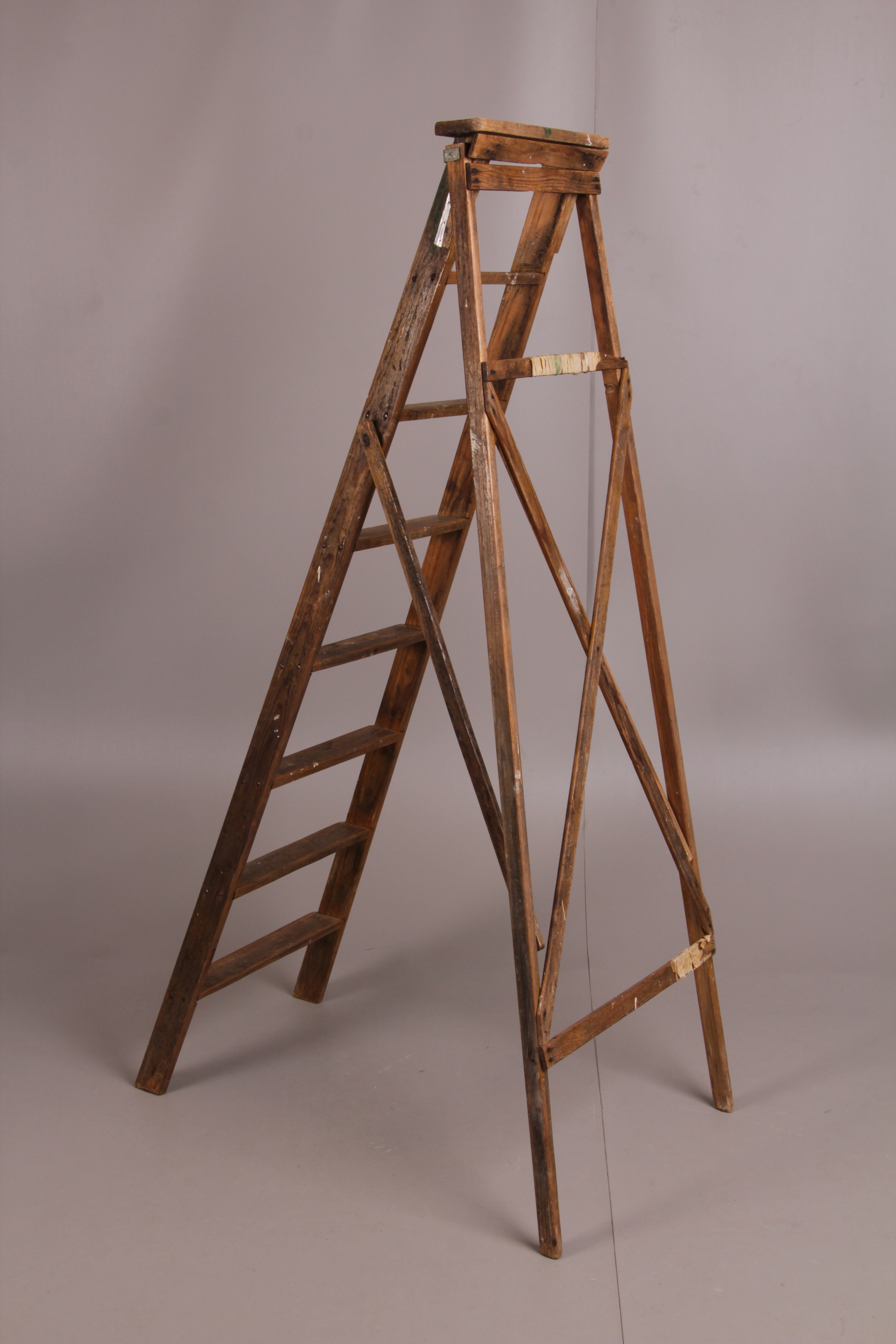 358050. LEITER, Holz, klappbar, Mitte des 20. Jahrhunderts.