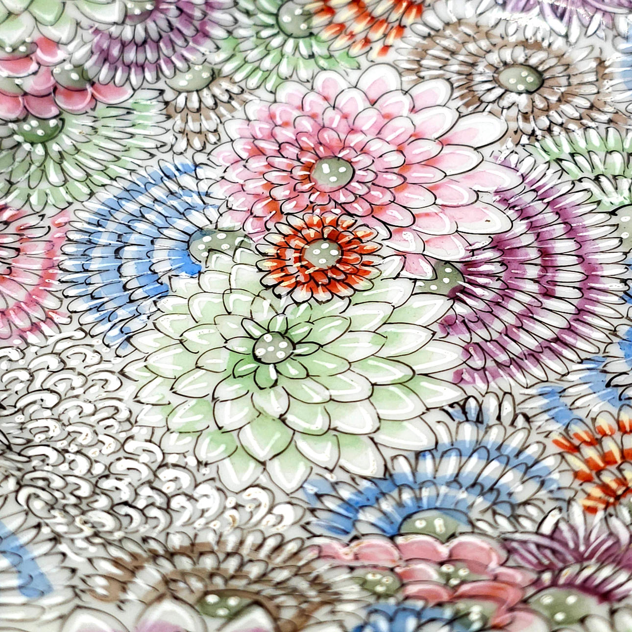 3581169. CHINESISCHER TELLER BEMALT UND IN SILBER GEFASST.
