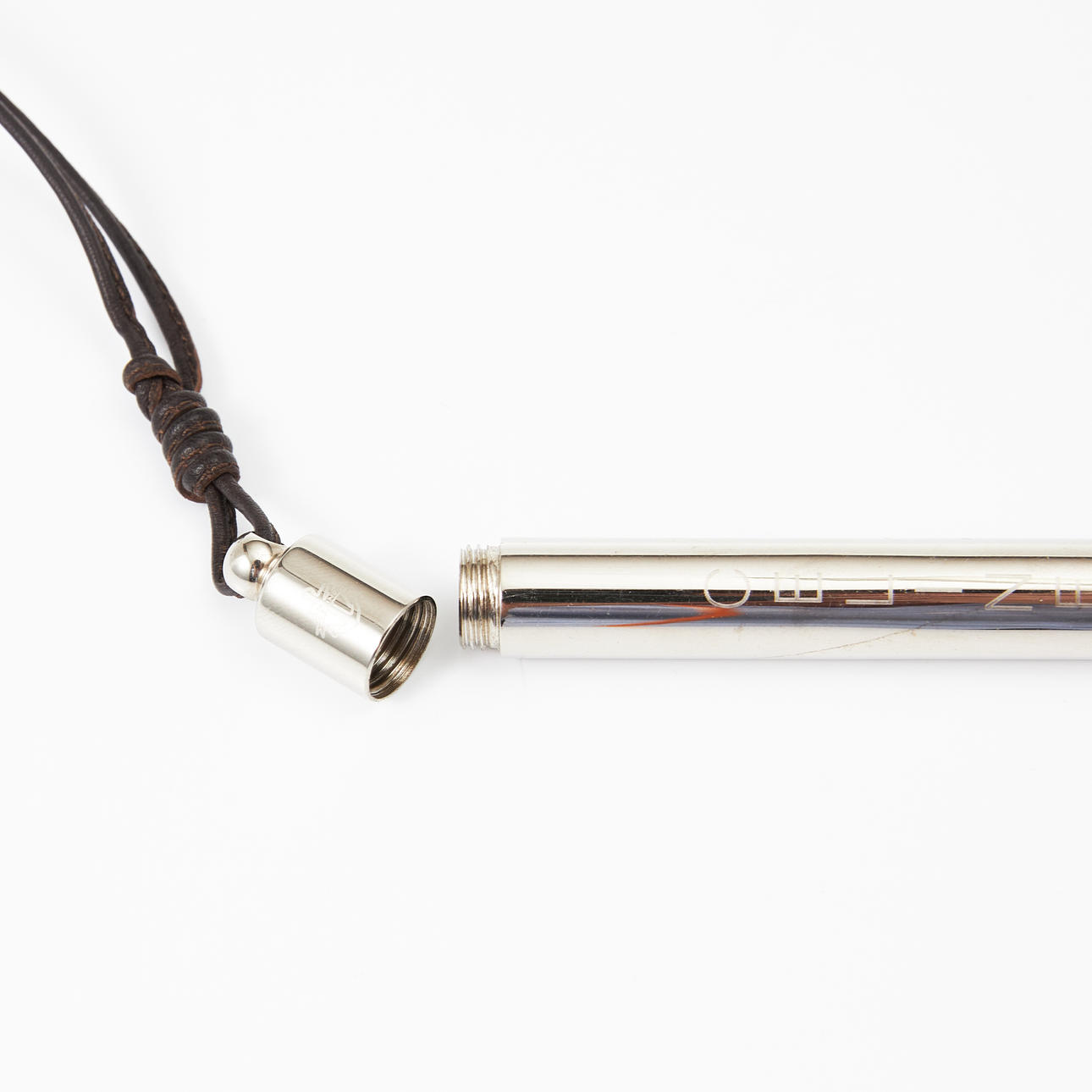 Anhänger mit aufklappbarem Leder, Aufschrift „Celine“ und mit Anker, Halskette aus Leder, Länge inklusive Anhänger ca. 45 cm.
