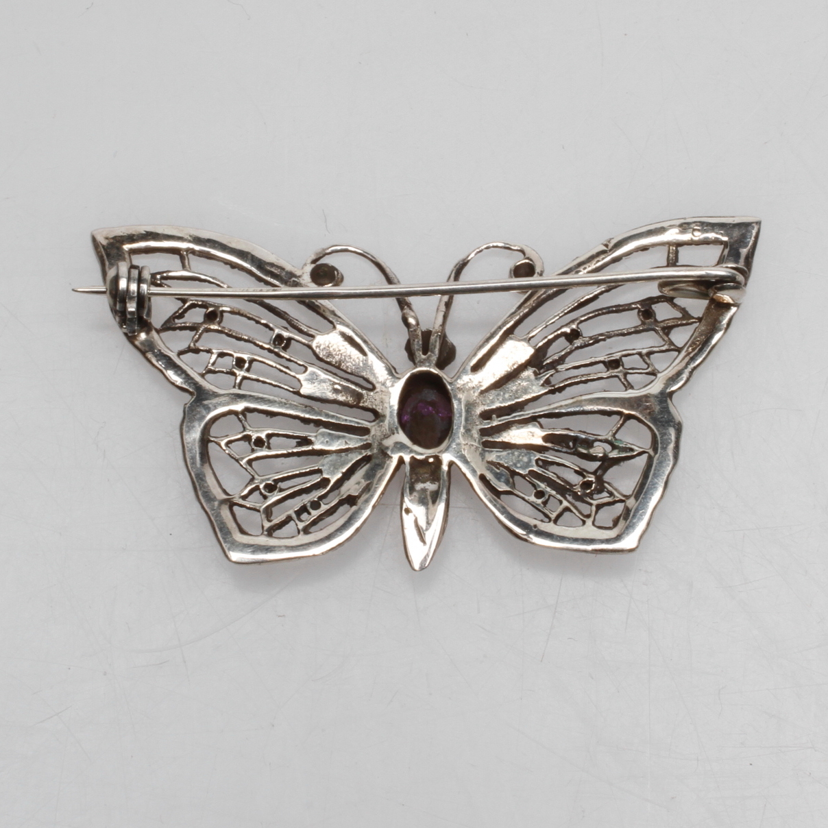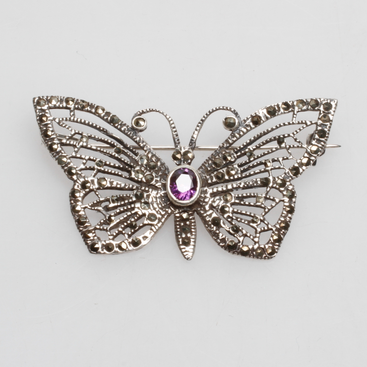358189. BROSCHE, Silber mit Markasiten, zweite Hälfte des 20. Jahrhunderts.
