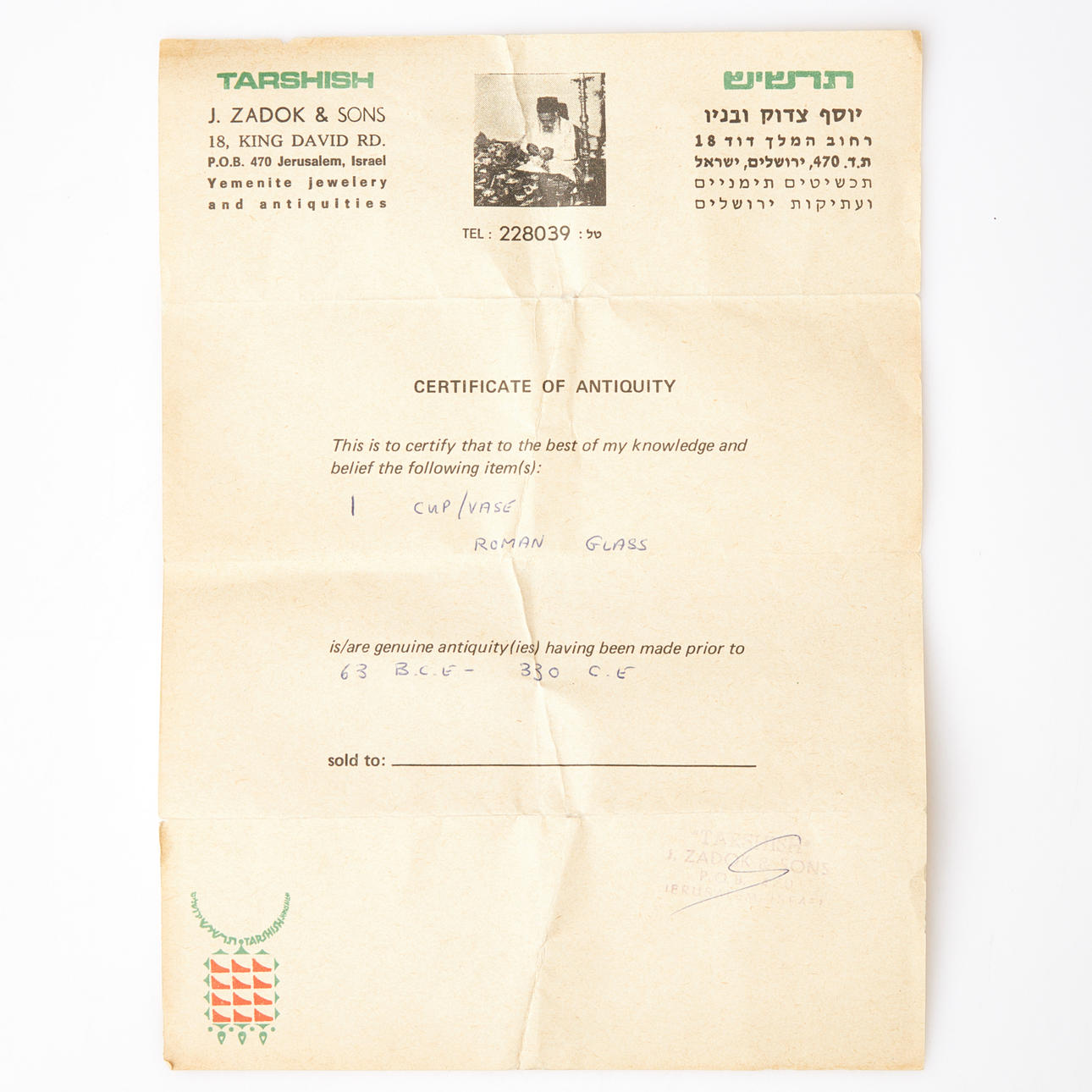 3582598. Ein Becher aus Glas, römisch, ca 0-300 e Kr.