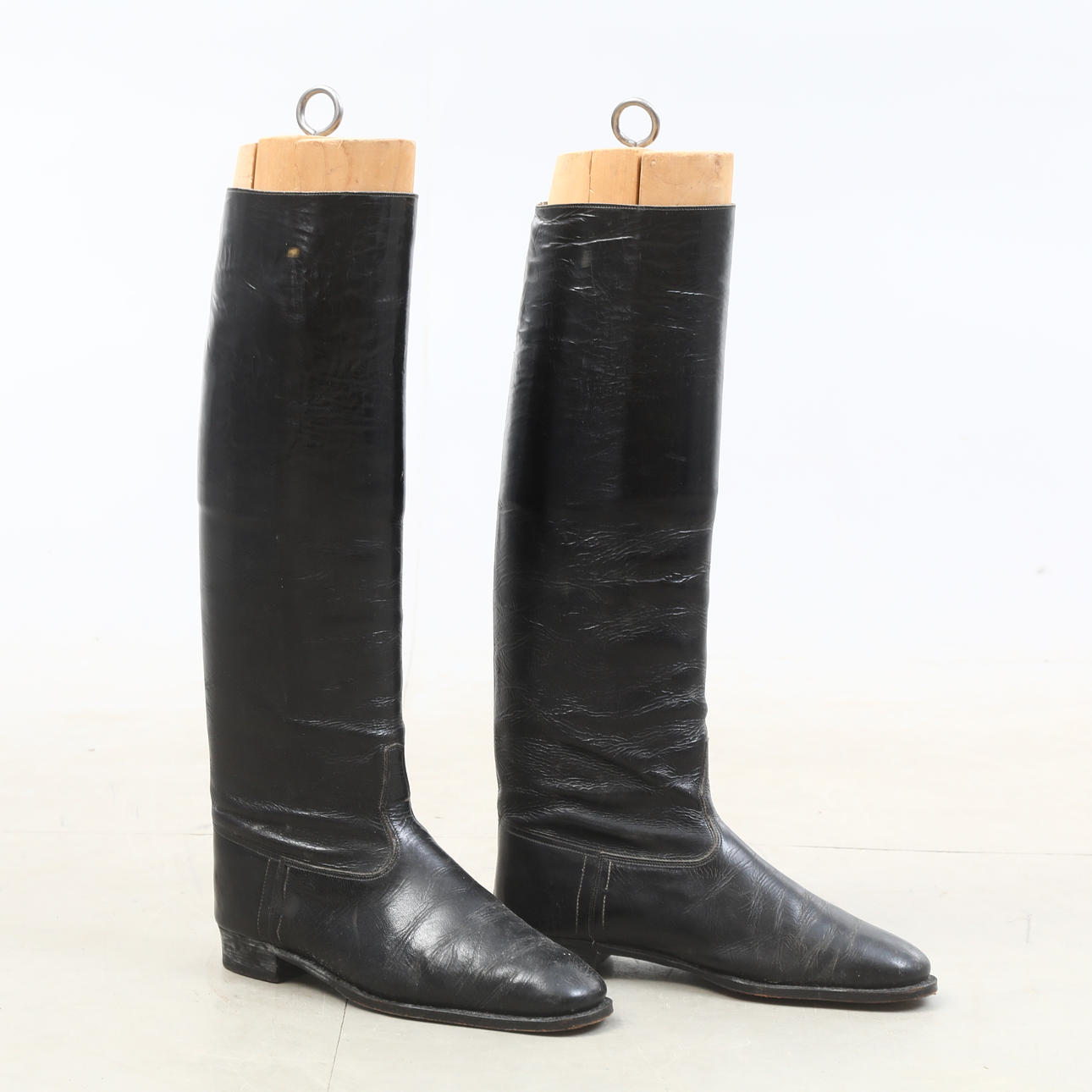 Reitstiefel mit Sporen und Stiefelblöcken.