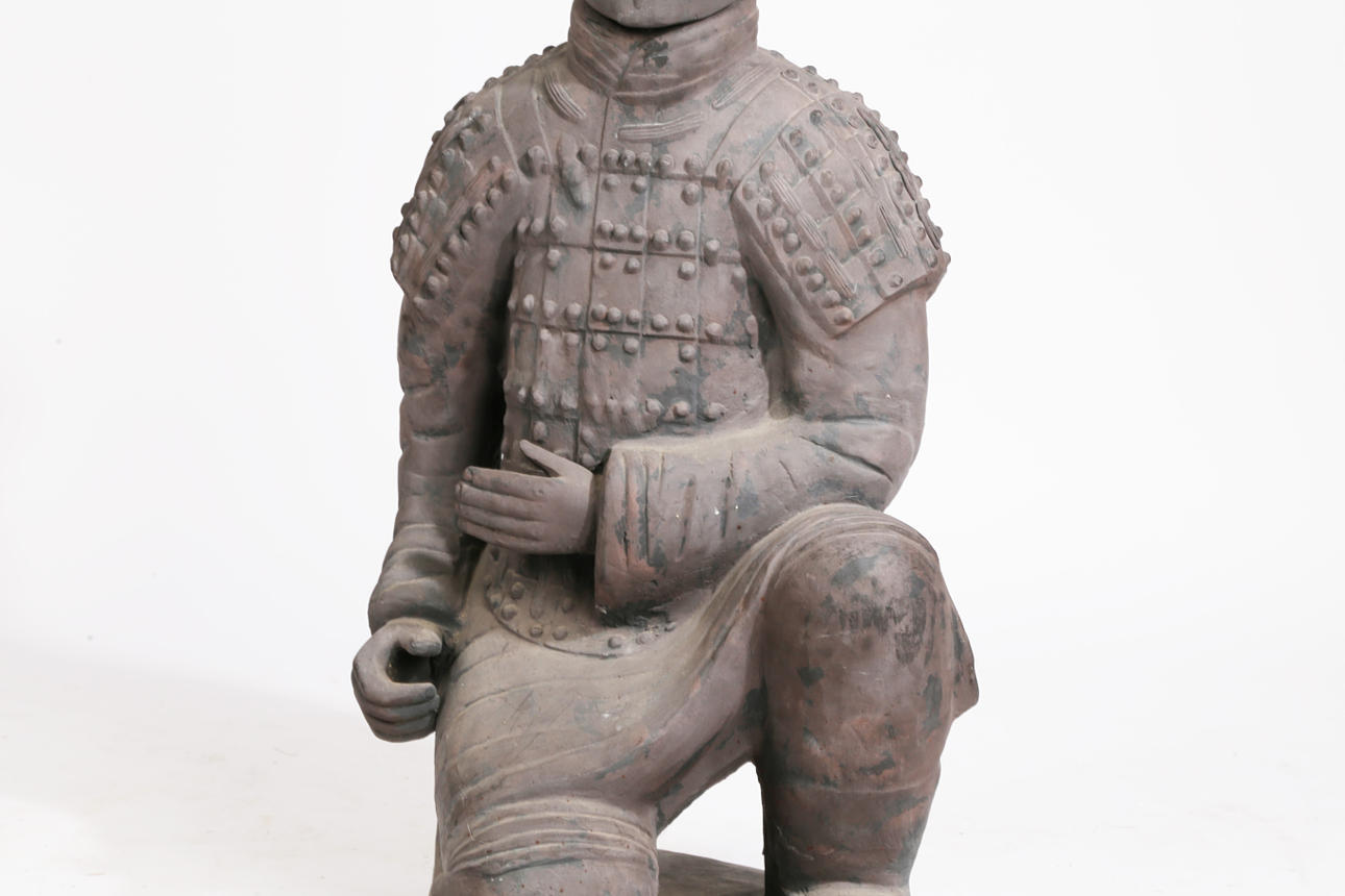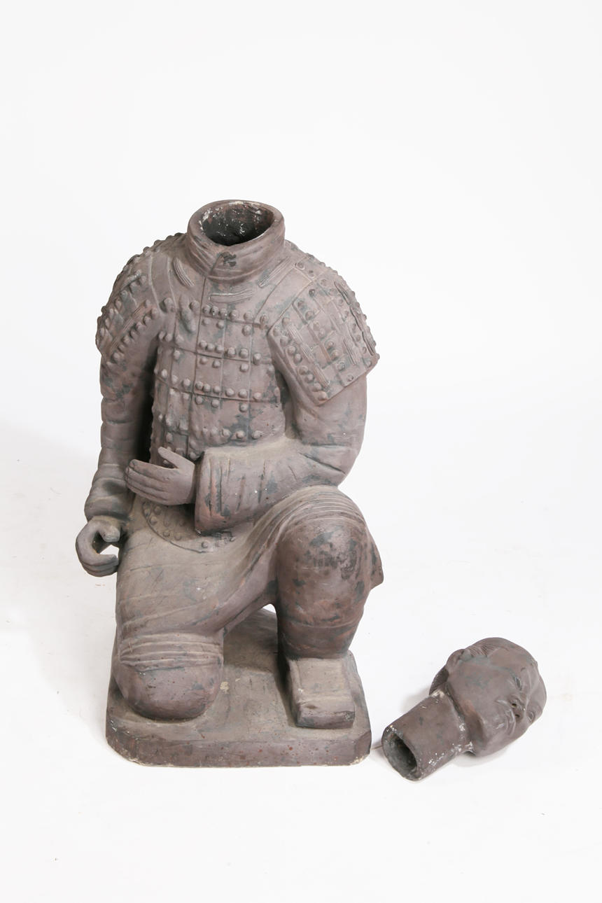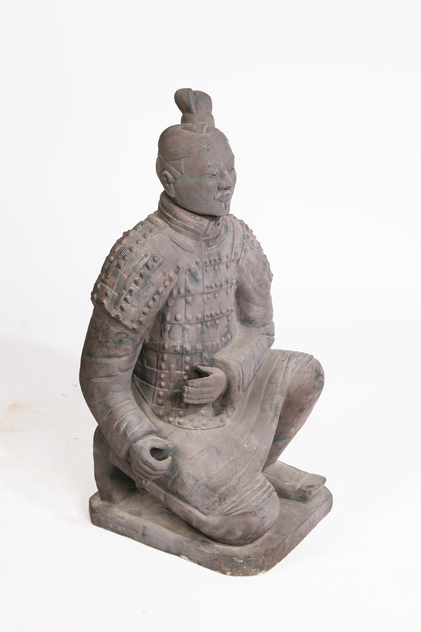 20. Jahrhundert, Darstellung eines chinesischen Soldaten, der auf einem Knie kniet, 93 cm hoch