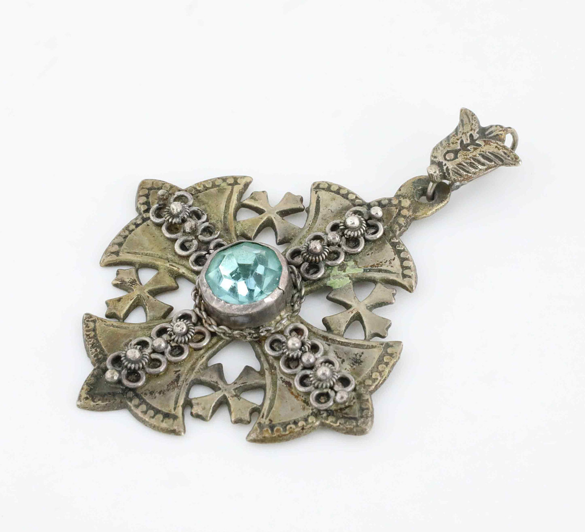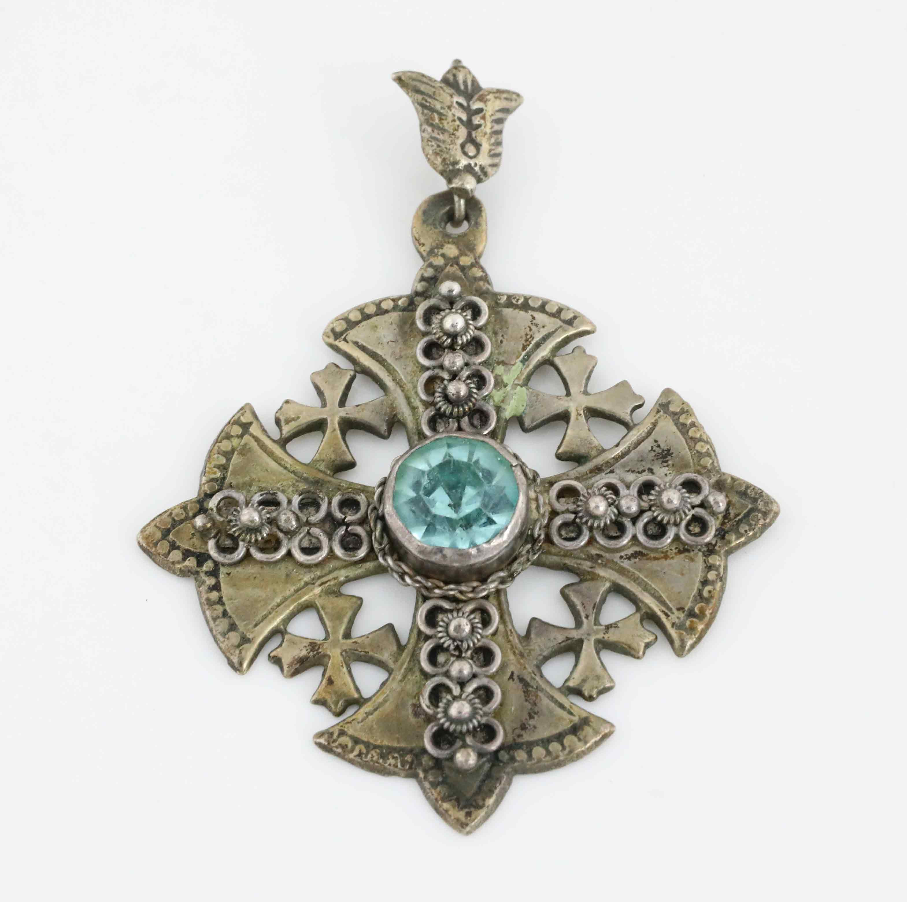 3592110. ANHÄNGER, Kreuz, Jerusalem, Silber, blauer Stein.