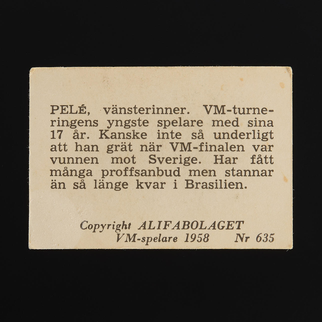 Das gefragte und wahrscheinlich erste Sammlerbild des brasilianischen Fußballers Pelé, als er bei der Fußballweltmeisterschaft 1958 in Schweden gerade 17 Jahre alt war.