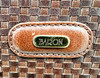 Badge-Etikett, Innenfach mit Reißverschluss. Details aus Messing.