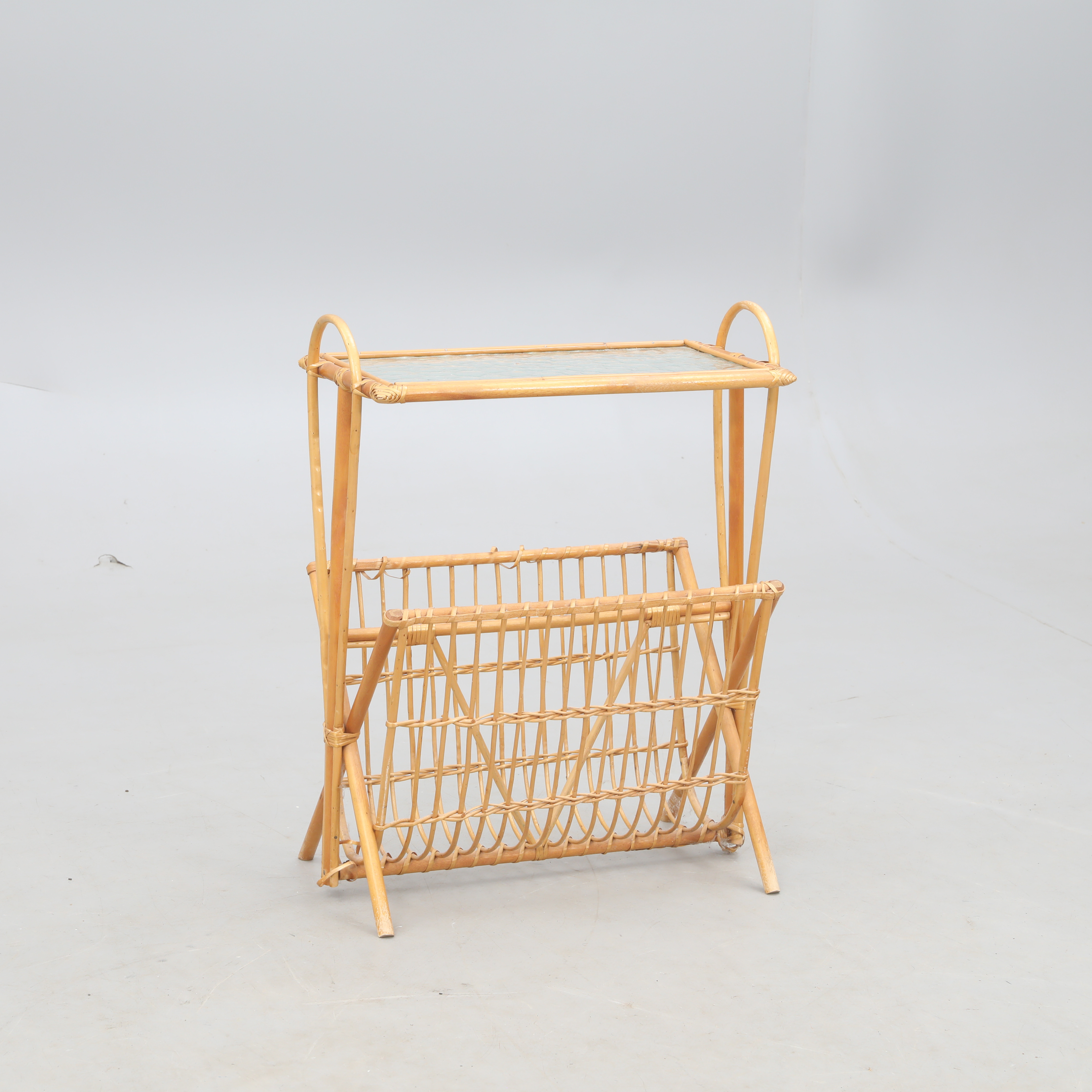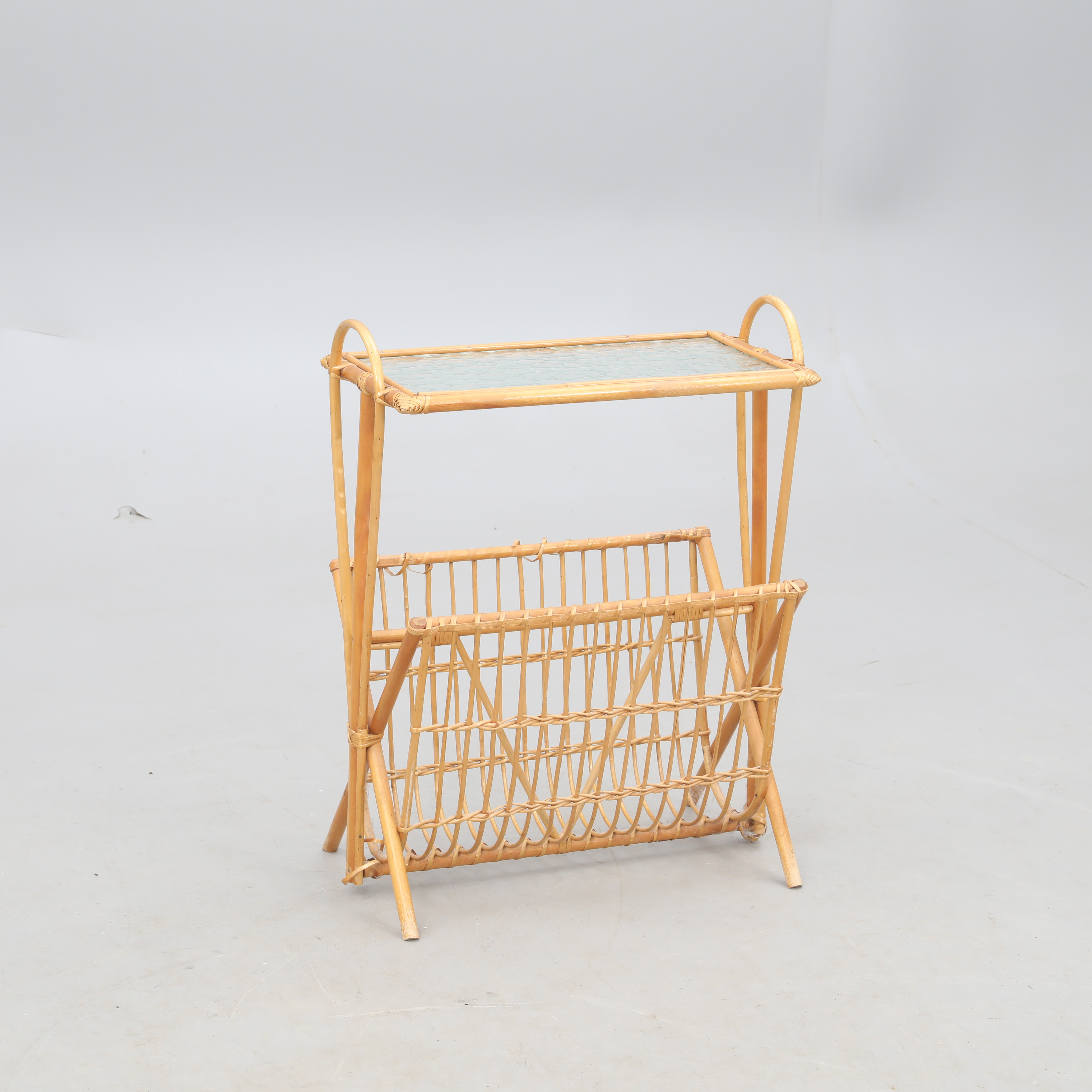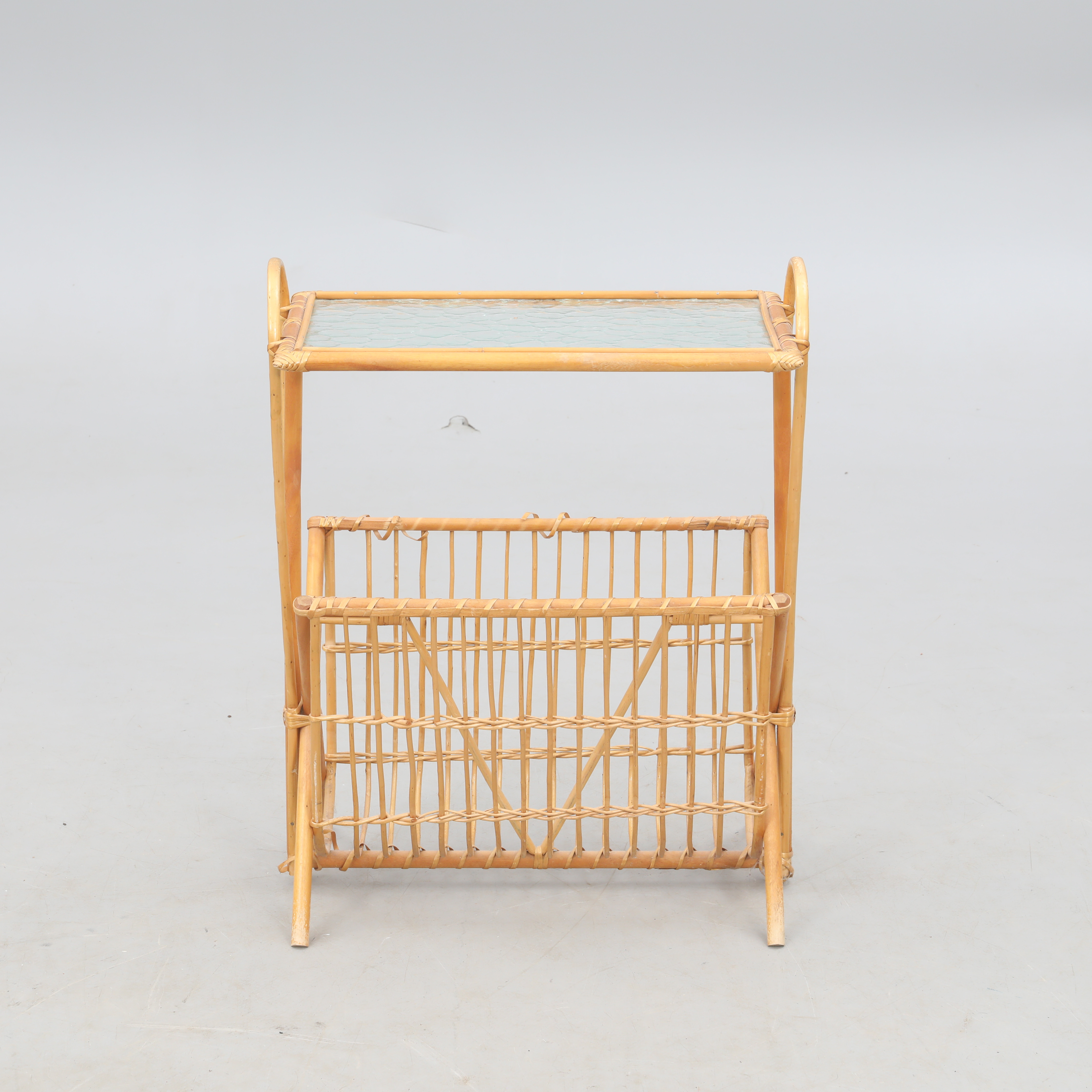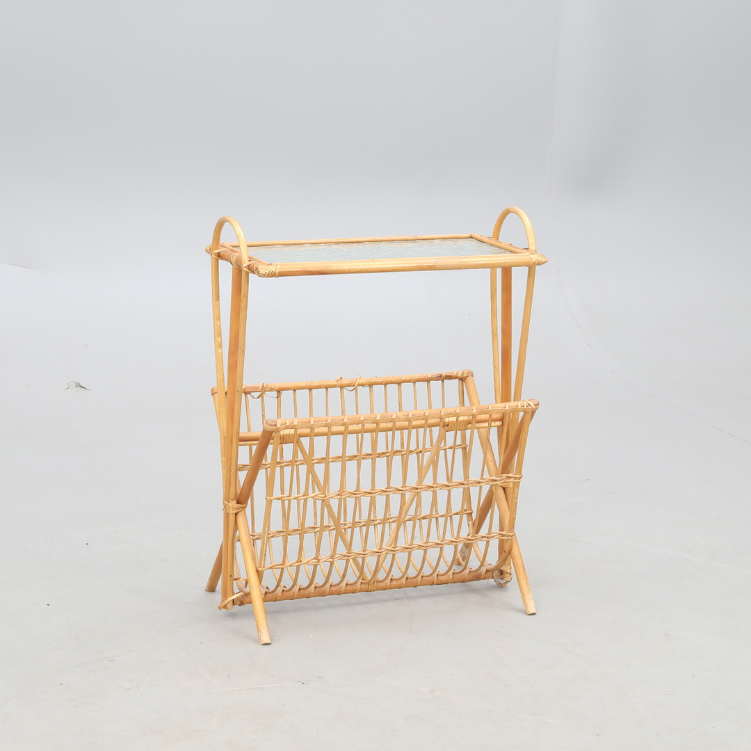 3597341. ZEITUNGSKIOSK, Rattan und Rohglas.