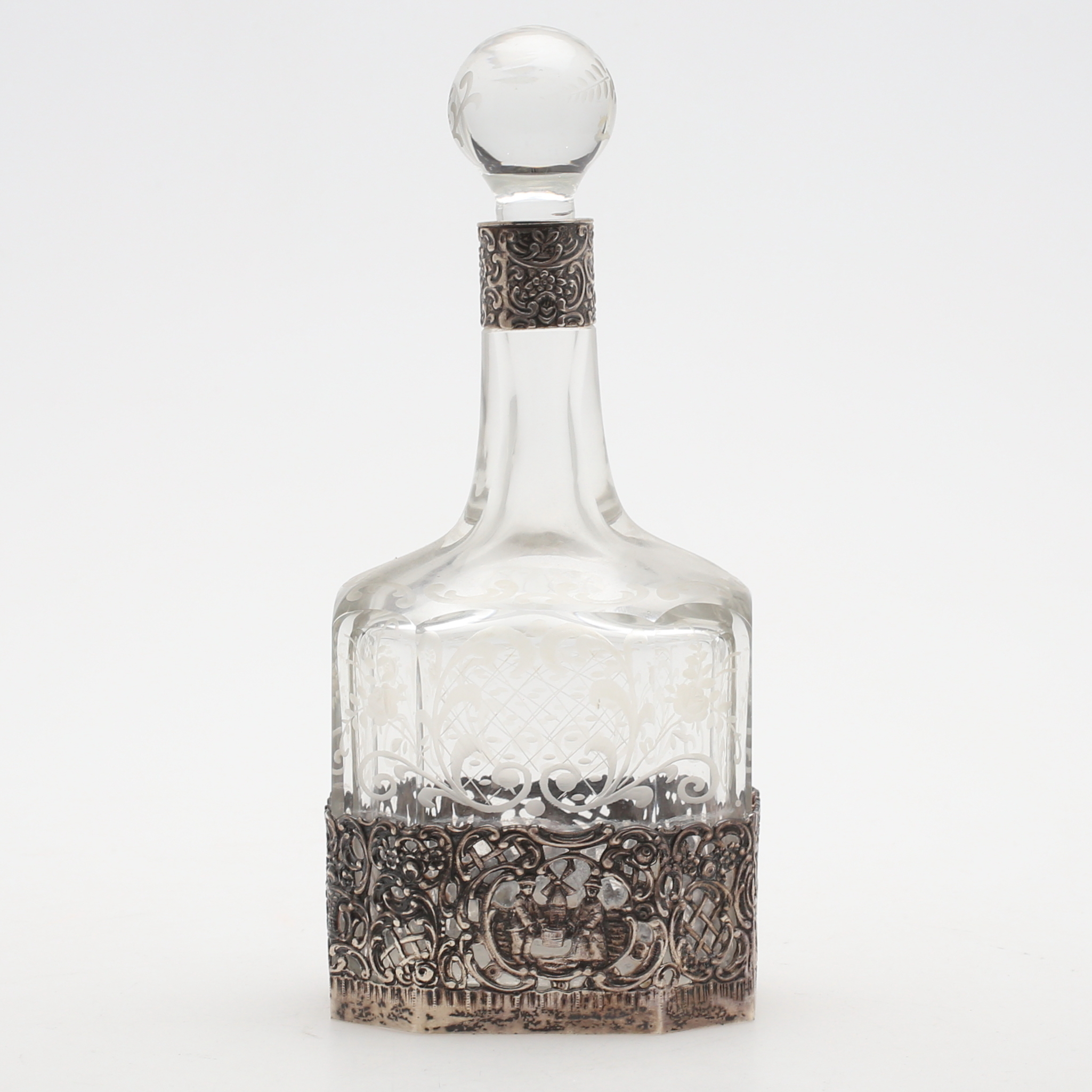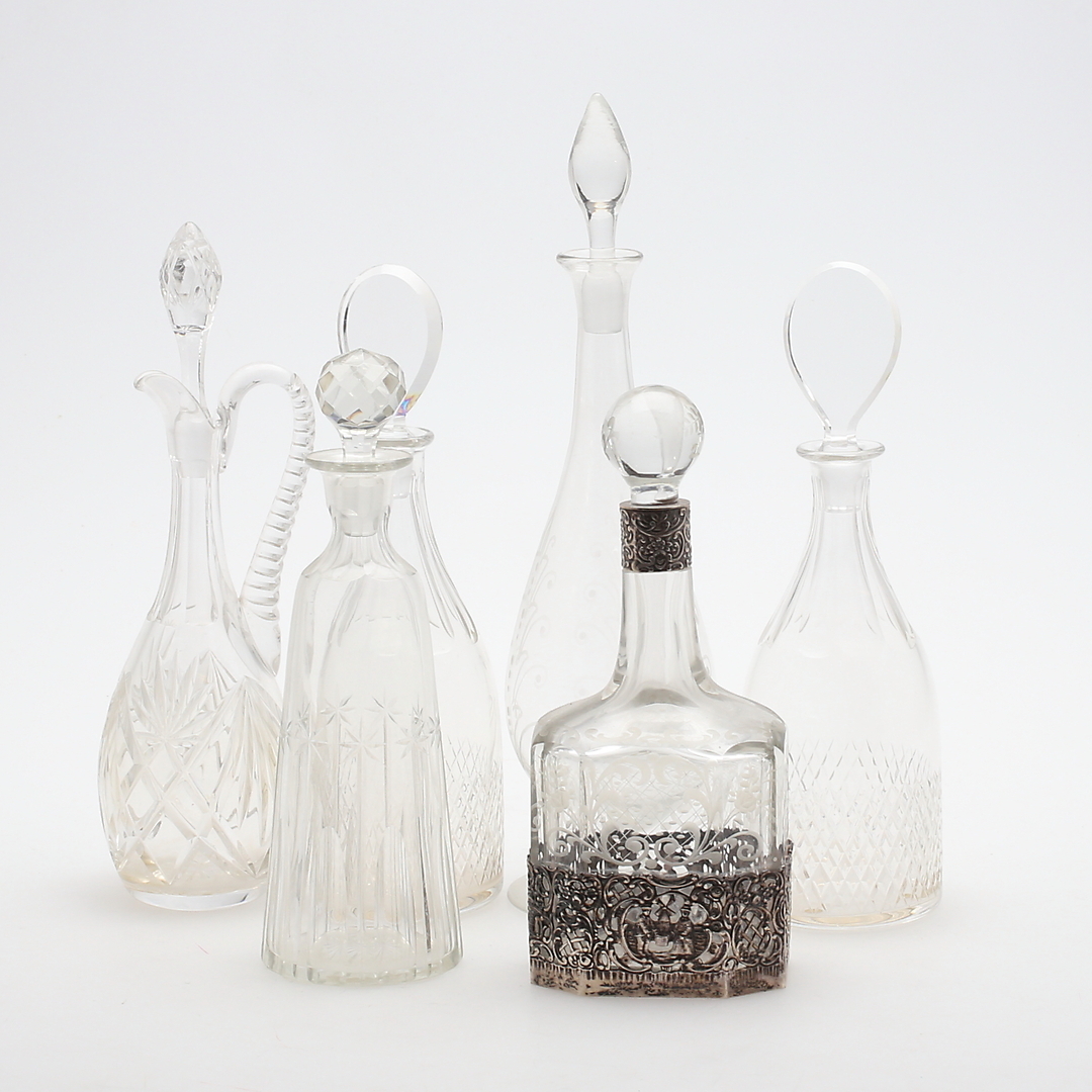 359971. KARAFFEN, 6 Stk., Glas/Silber, 18-1900.