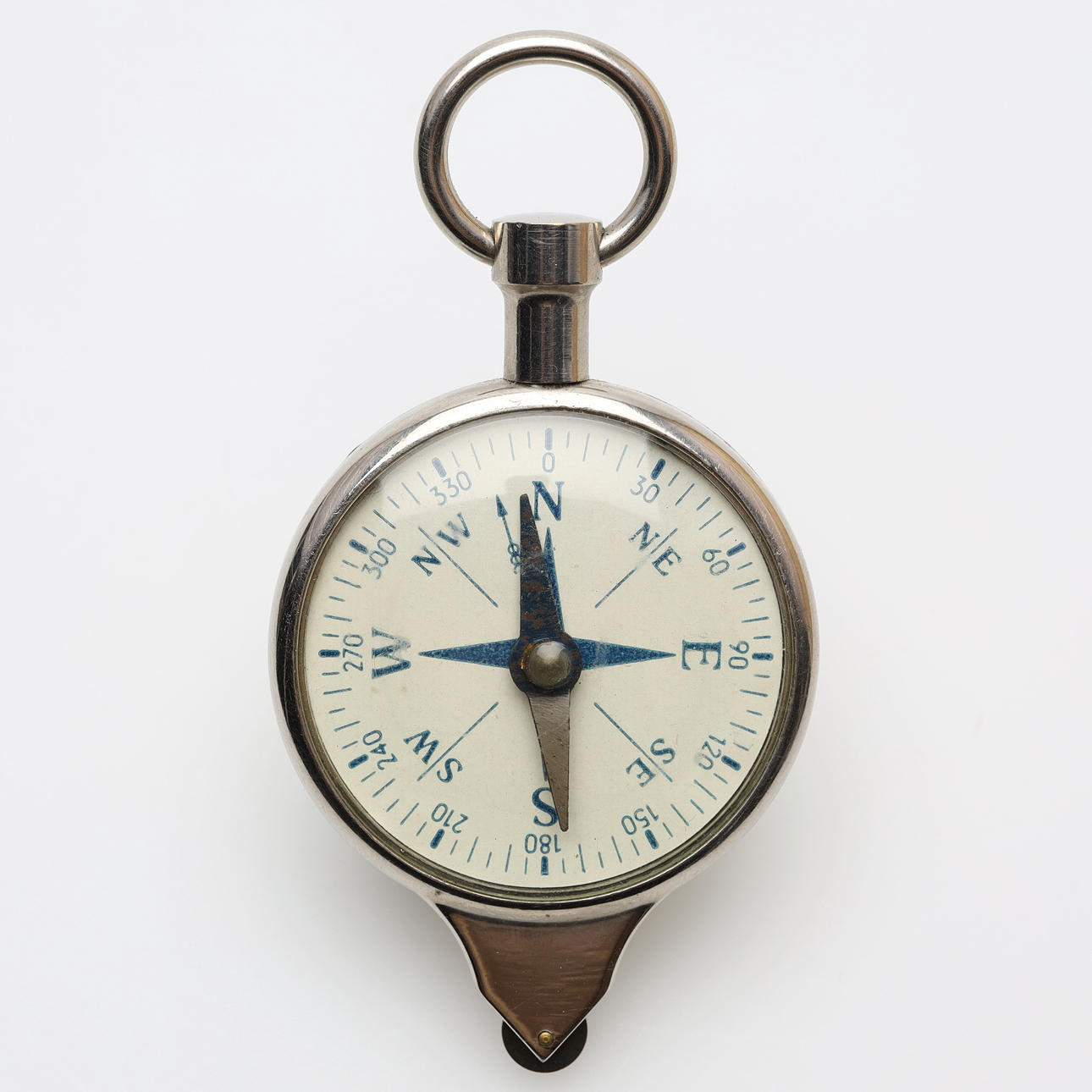 Ein zweiseitiges Entfernungsmessgerät und Kompass, Stahl. In einer Ledertasche.