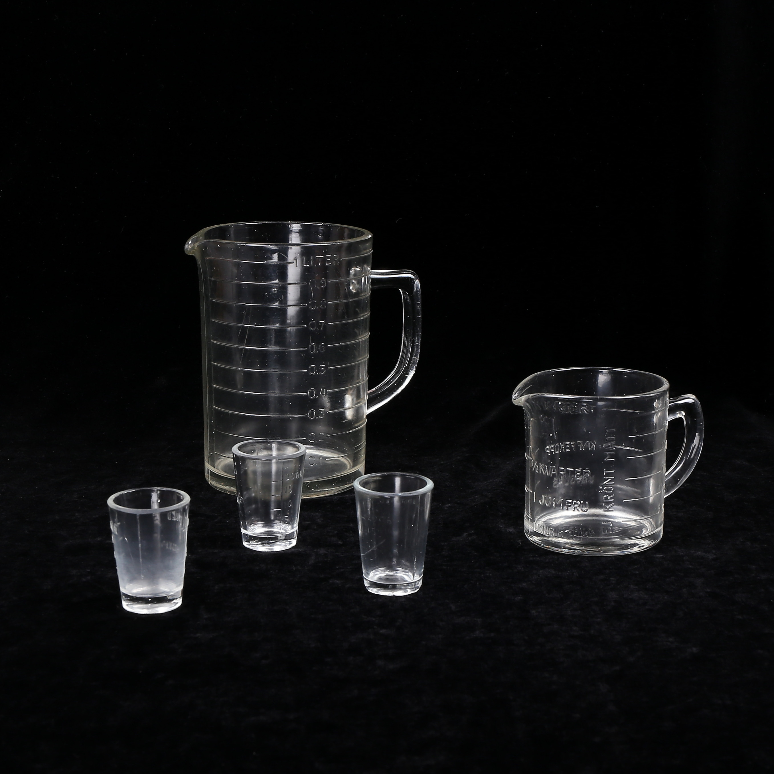3600972. MESSSÄTZE, 5-TEILIG, GLAS.