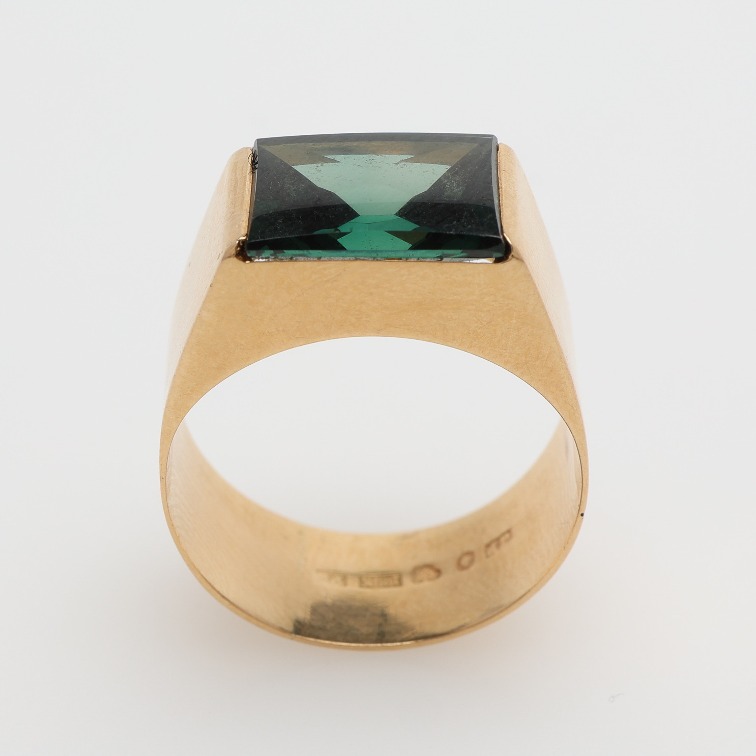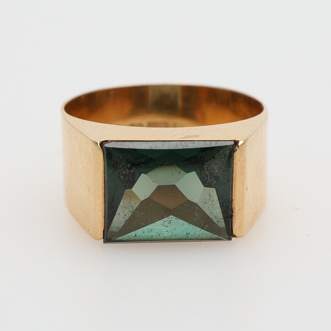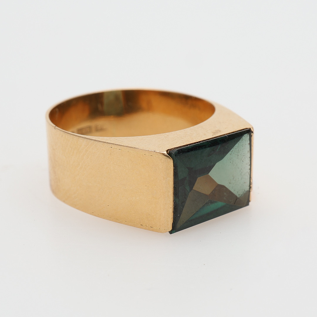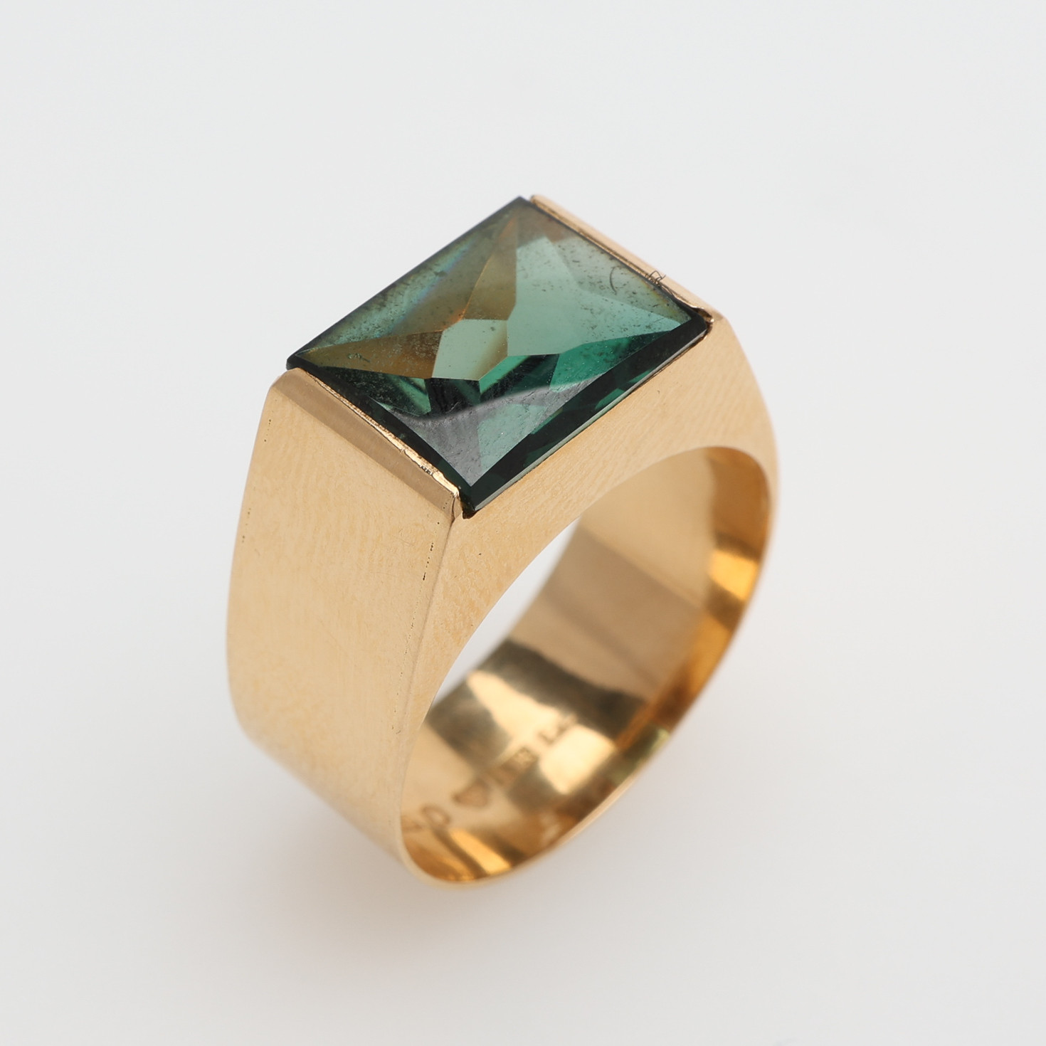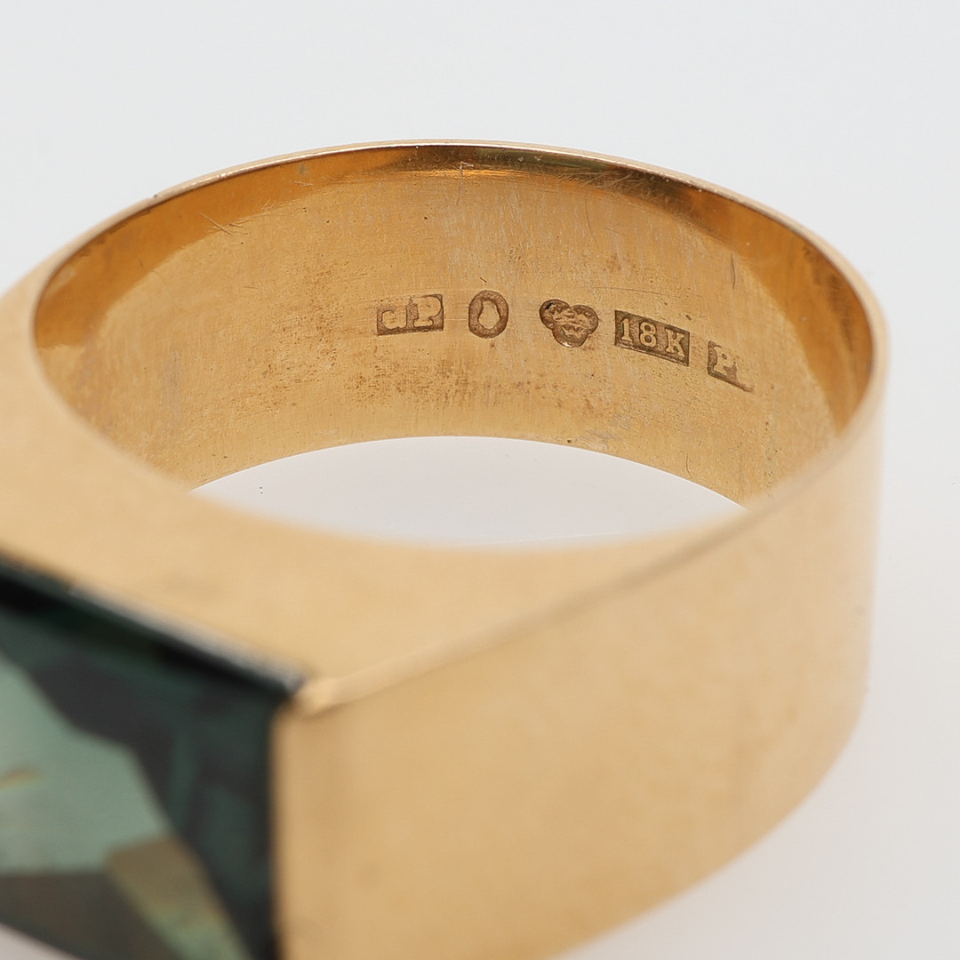 3604787. RING 18K MIT GRÜNEM STEIN, 5,8 g.
