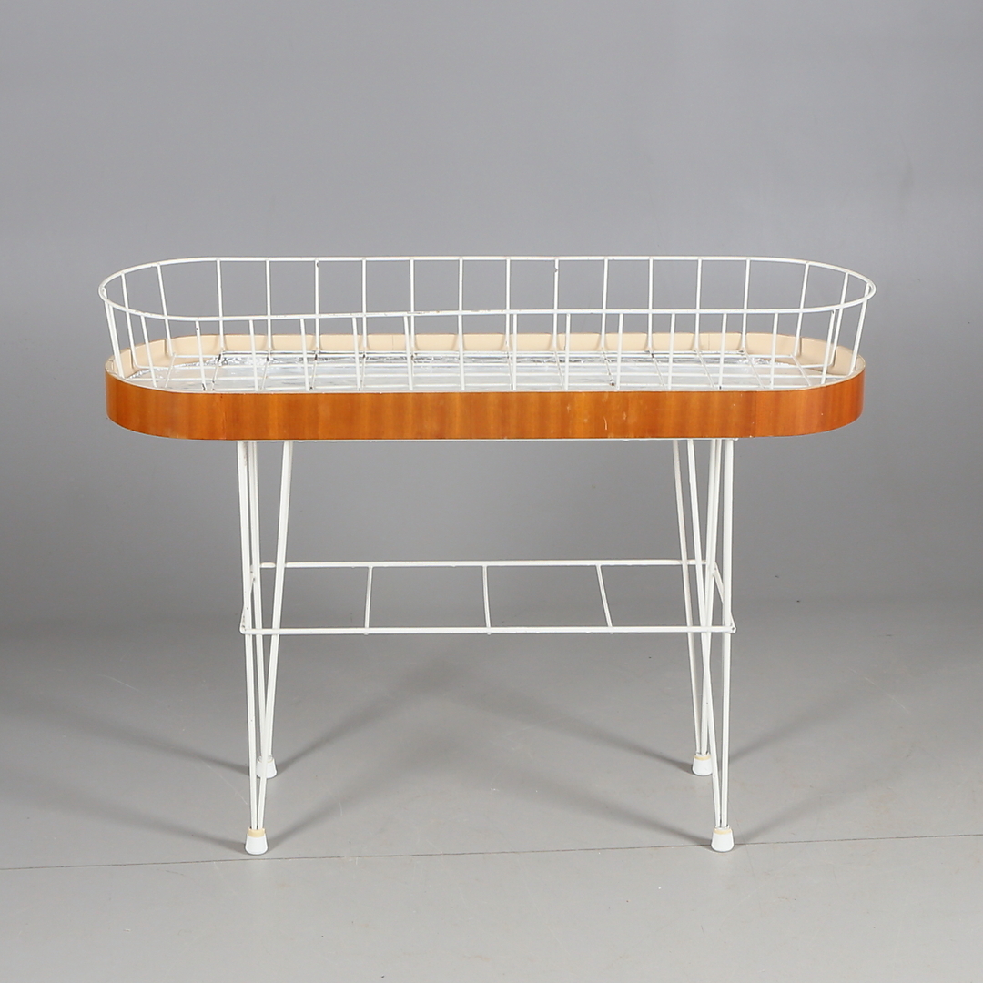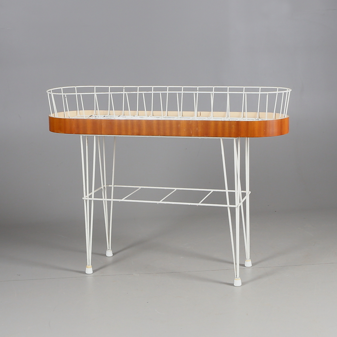 360520. BLUMENTISCH, Holz/Metall, Mitte 20. Jahrhundert.