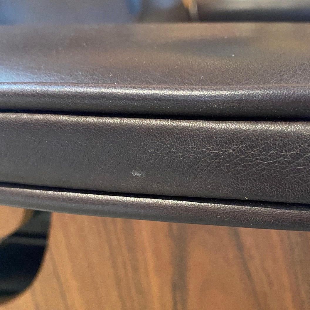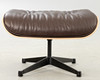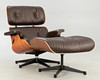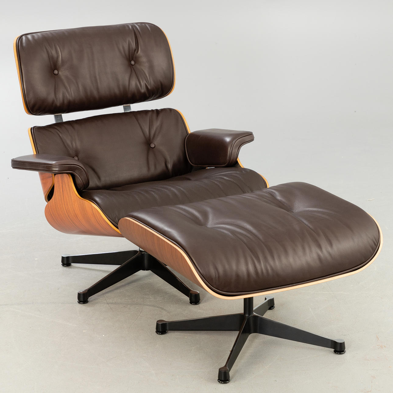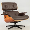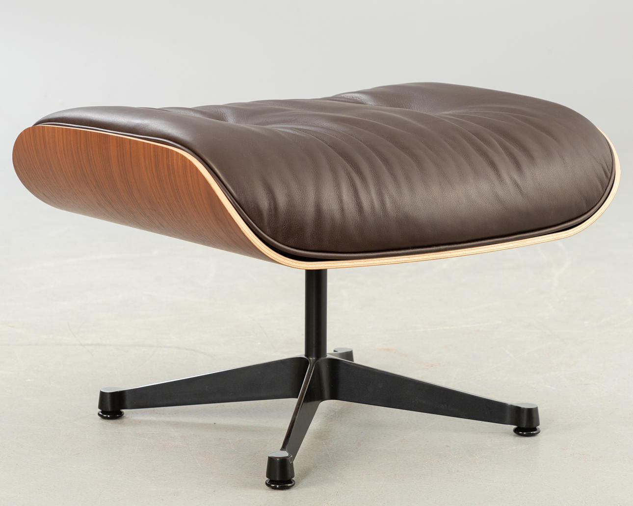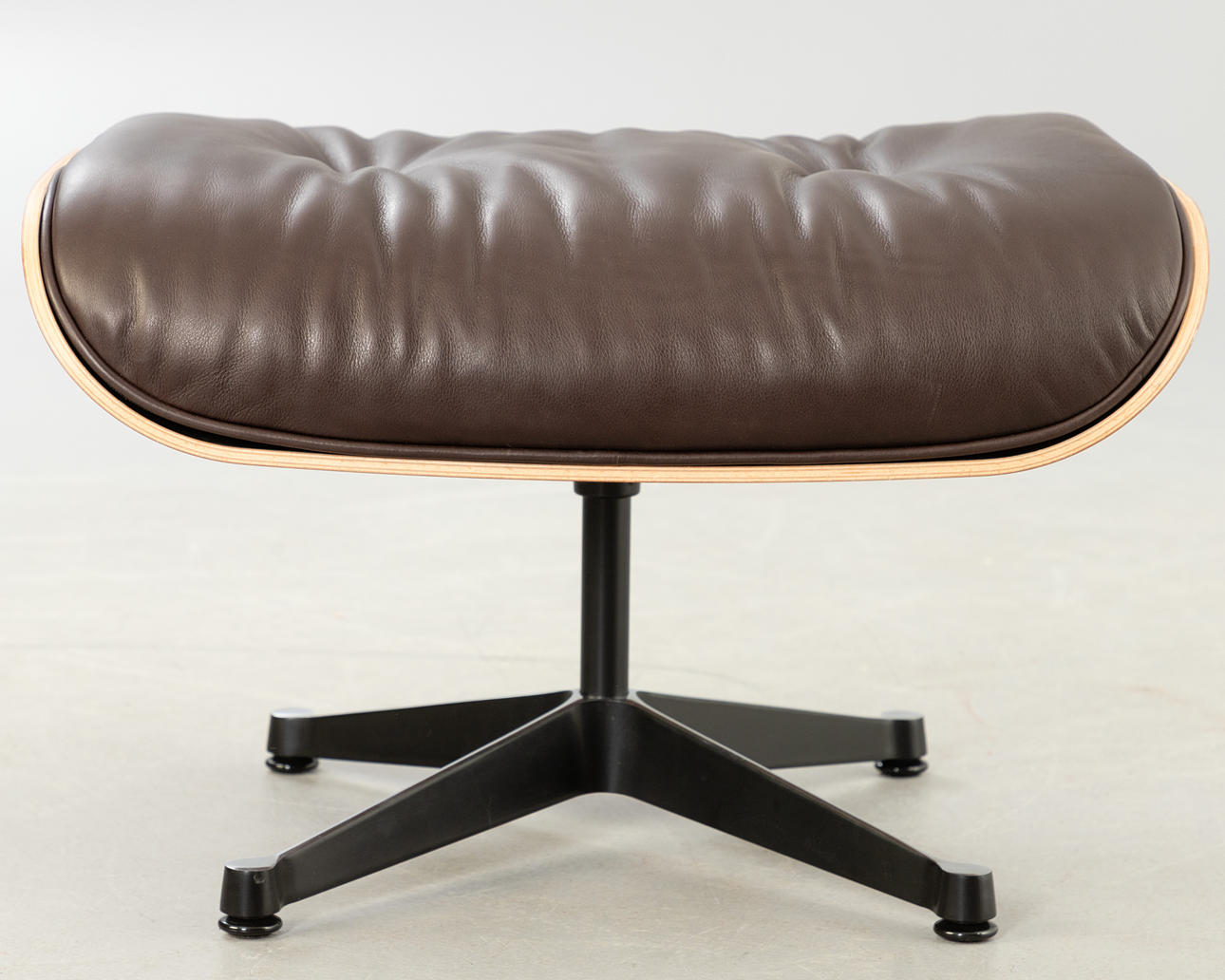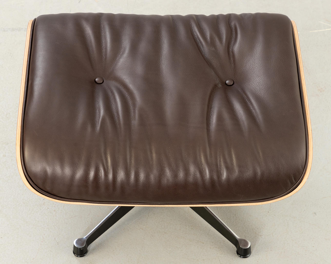 Holz, Aluminium und Leder. Entwurf: 1956. Version in Nussbaumholzfurnier und braunem Leder, "Premium Leder Natural F chocolate". Sitz- und Rückenschalen sowie Armlehnen aus furniertem Formschichtholz. Abnehmbarer Bezug und Polstereinheiten.