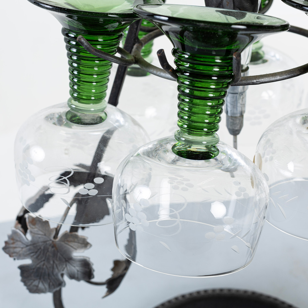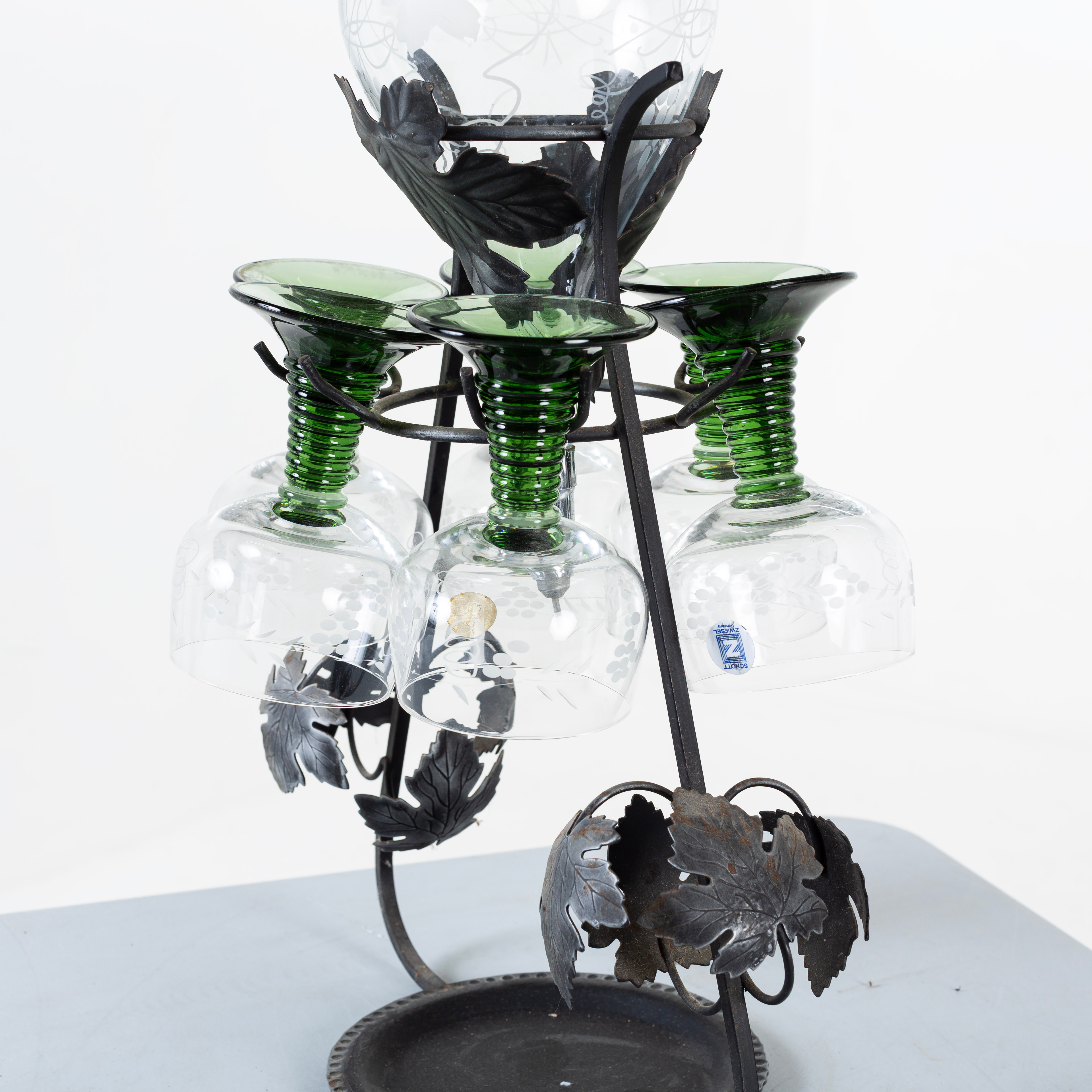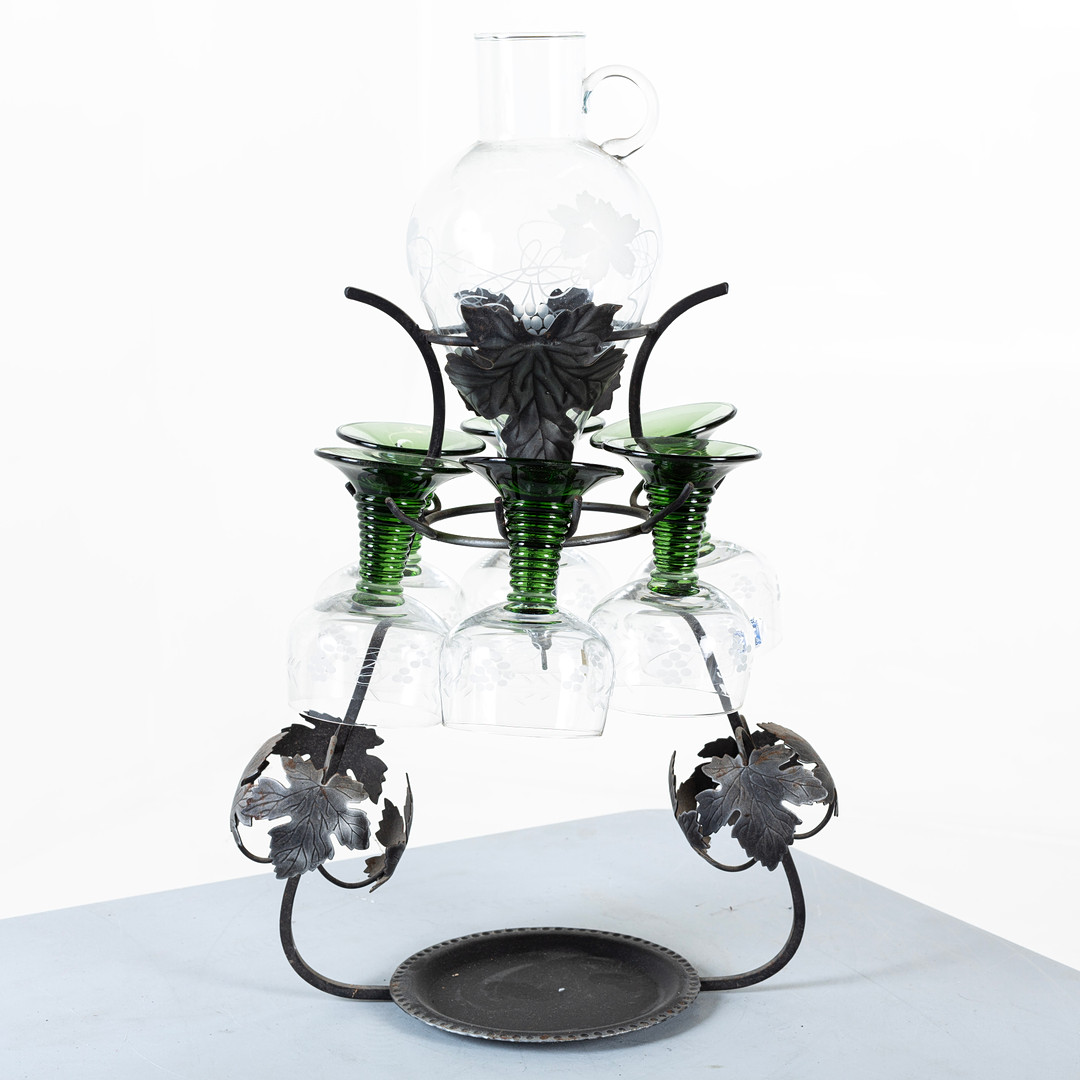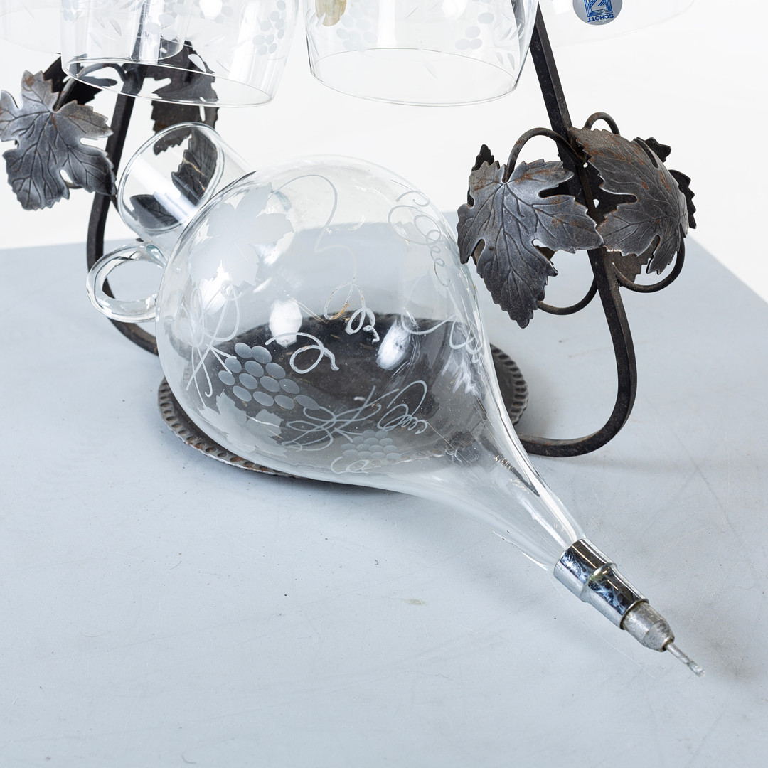 3611245. WEINBEHÄLTER, GLAS UND GESCHMIEDET MIT RIEMEN.
