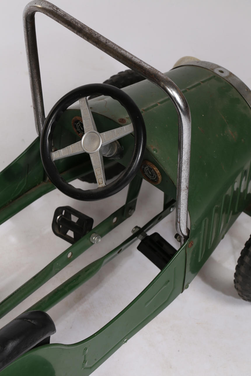 EIN TRETAUTO FÜR KINDER IN FORM EINES OLDTIMERS.
