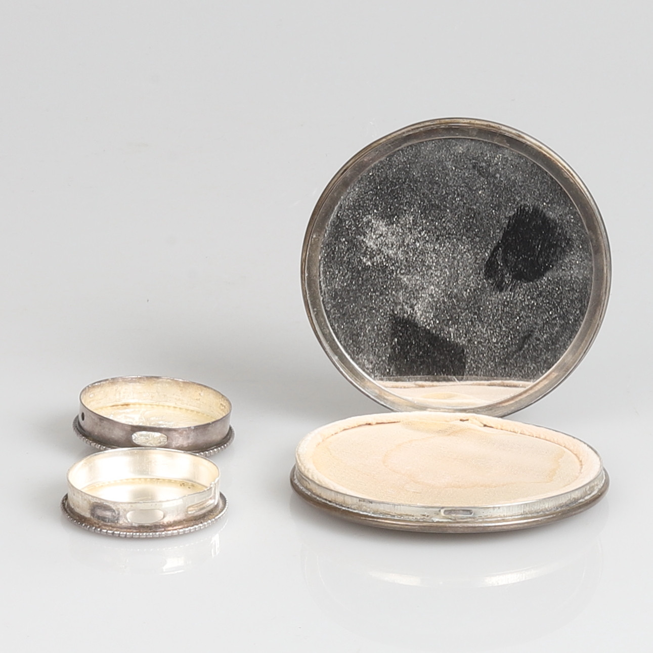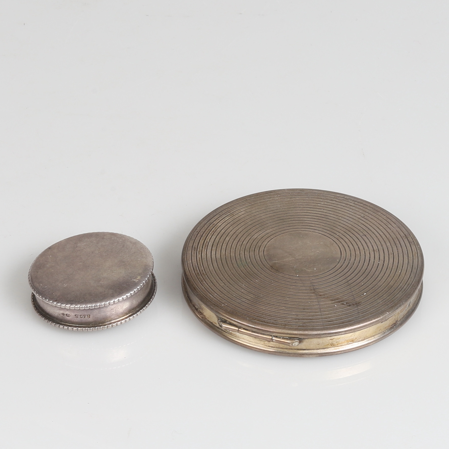 3614129. PUDERDOSE UND TABLETTENBOX, Silber.