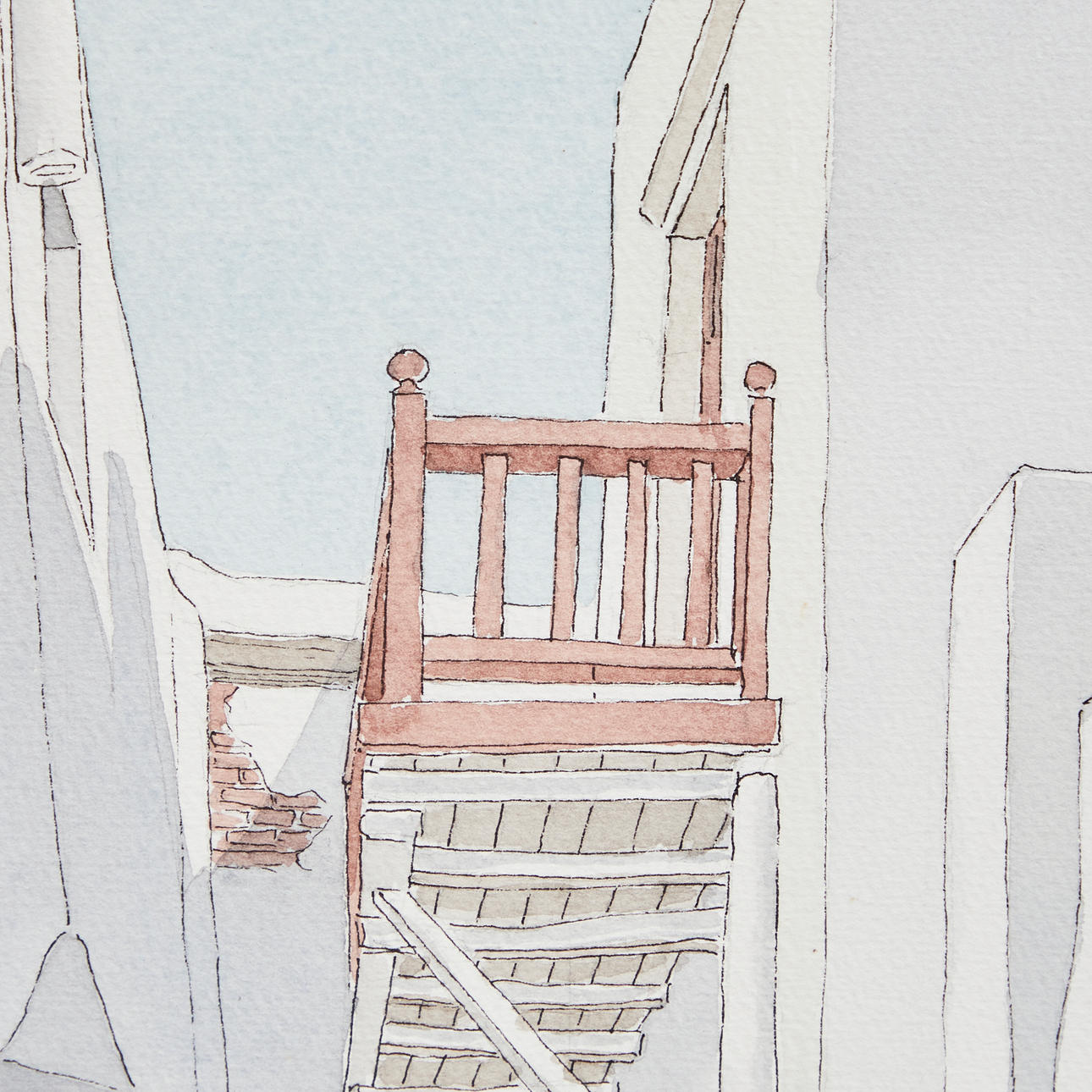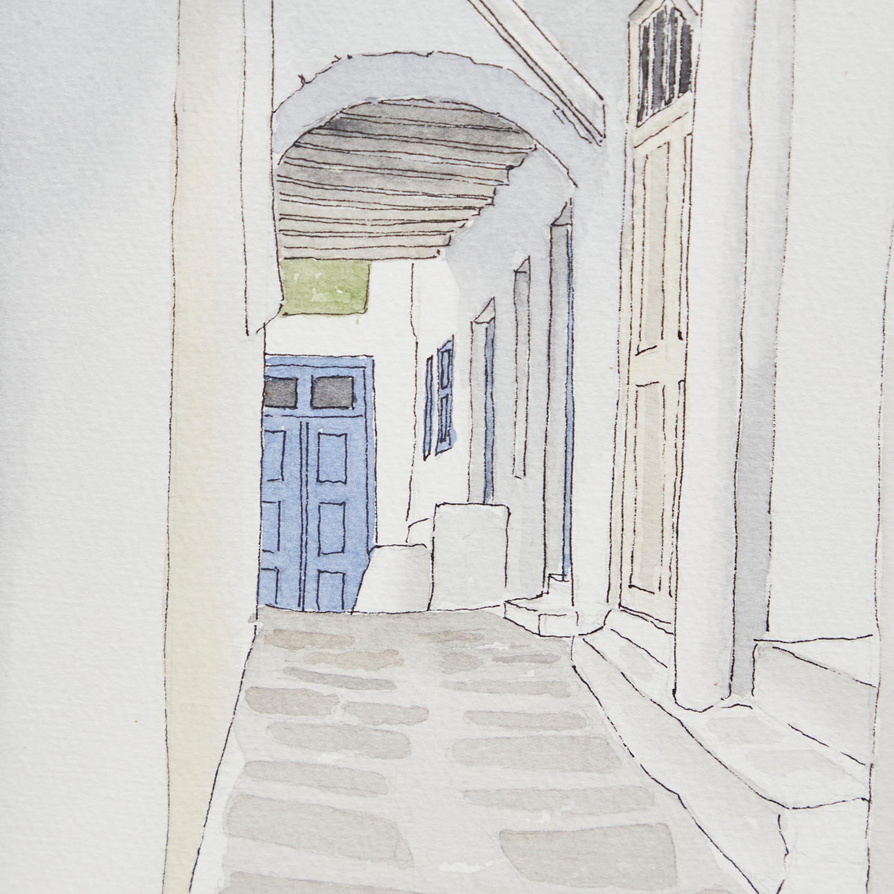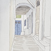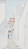 Lothar Braun (geb. 1931), Gasse, Aquarell auf Papier, signiert, ca. 42,5 x 24,5 cm, hinter Passepartout und Glas gerahmt, mit Rahmen ca. 63,5 x 44,5 cm.