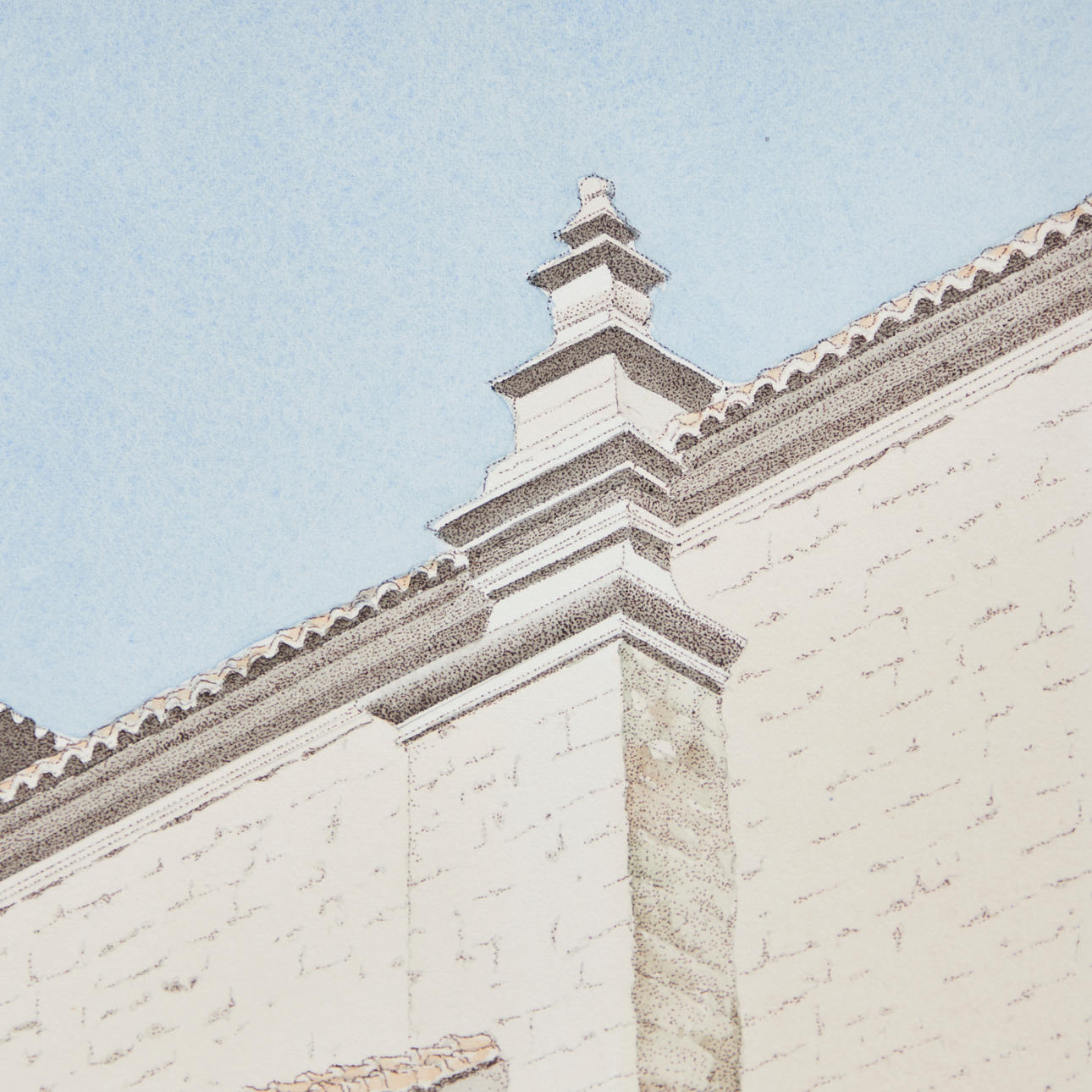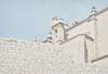 3618390. LOTHAR BRAUN (GEB. 1931). Steinmauer vor Glockenturm.