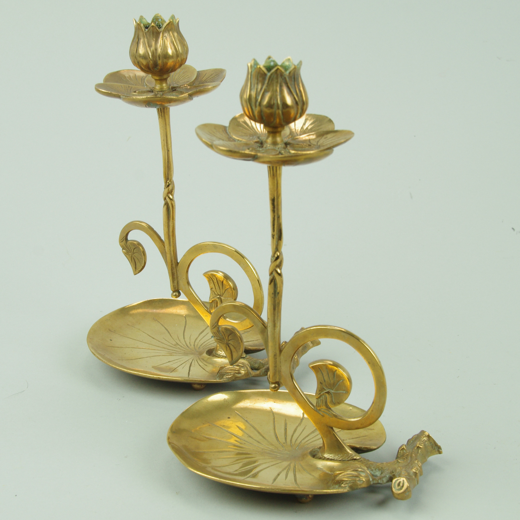 362386. KERZENSTÄNDER, 1 Paar, Messing, Jugendstil.