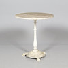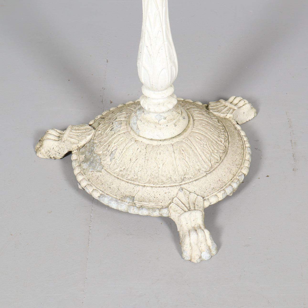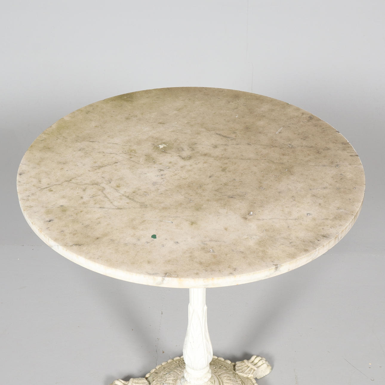 Verschleiß, verfärbte, abgenutzte Tischplatte, Farbabfall am Fuß.