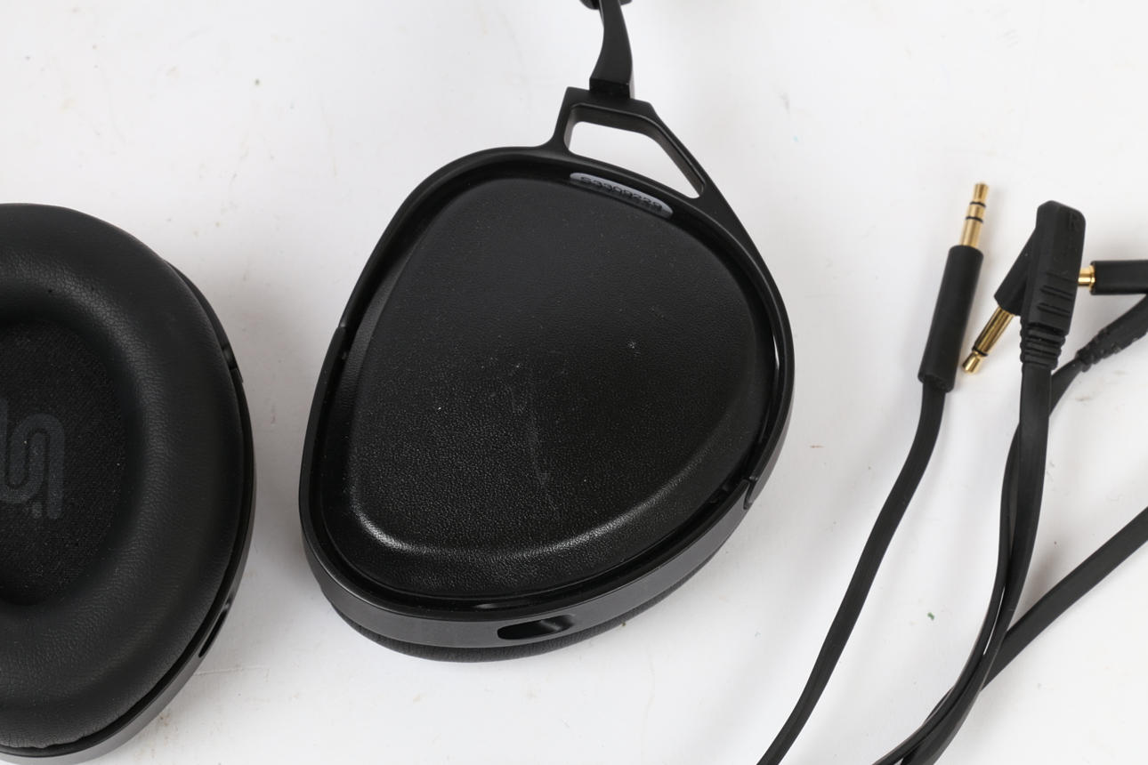 Die planaren magnetischen On-Ear-Kopfhörer von Audeze in Schwarz, Seriennummer S3309229.