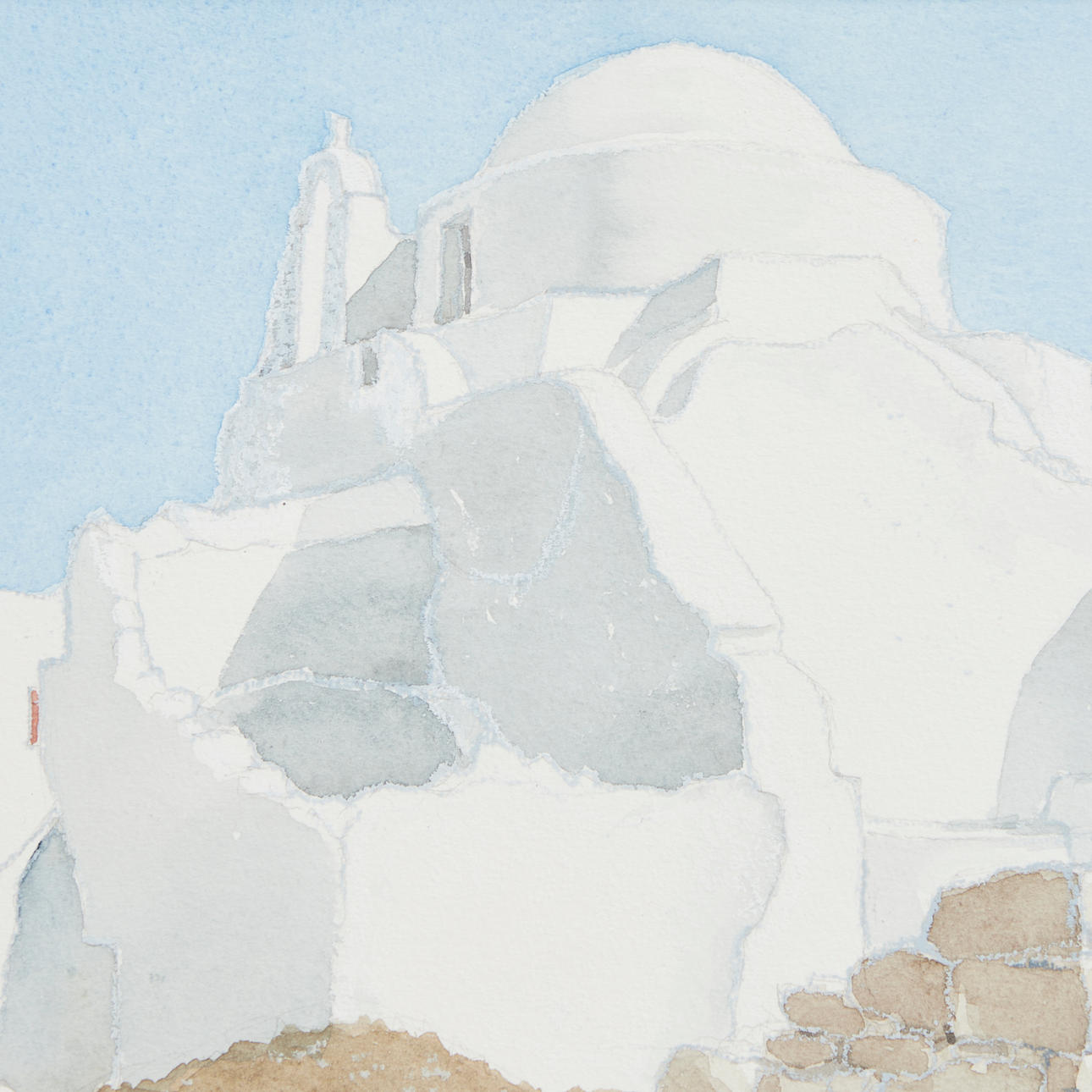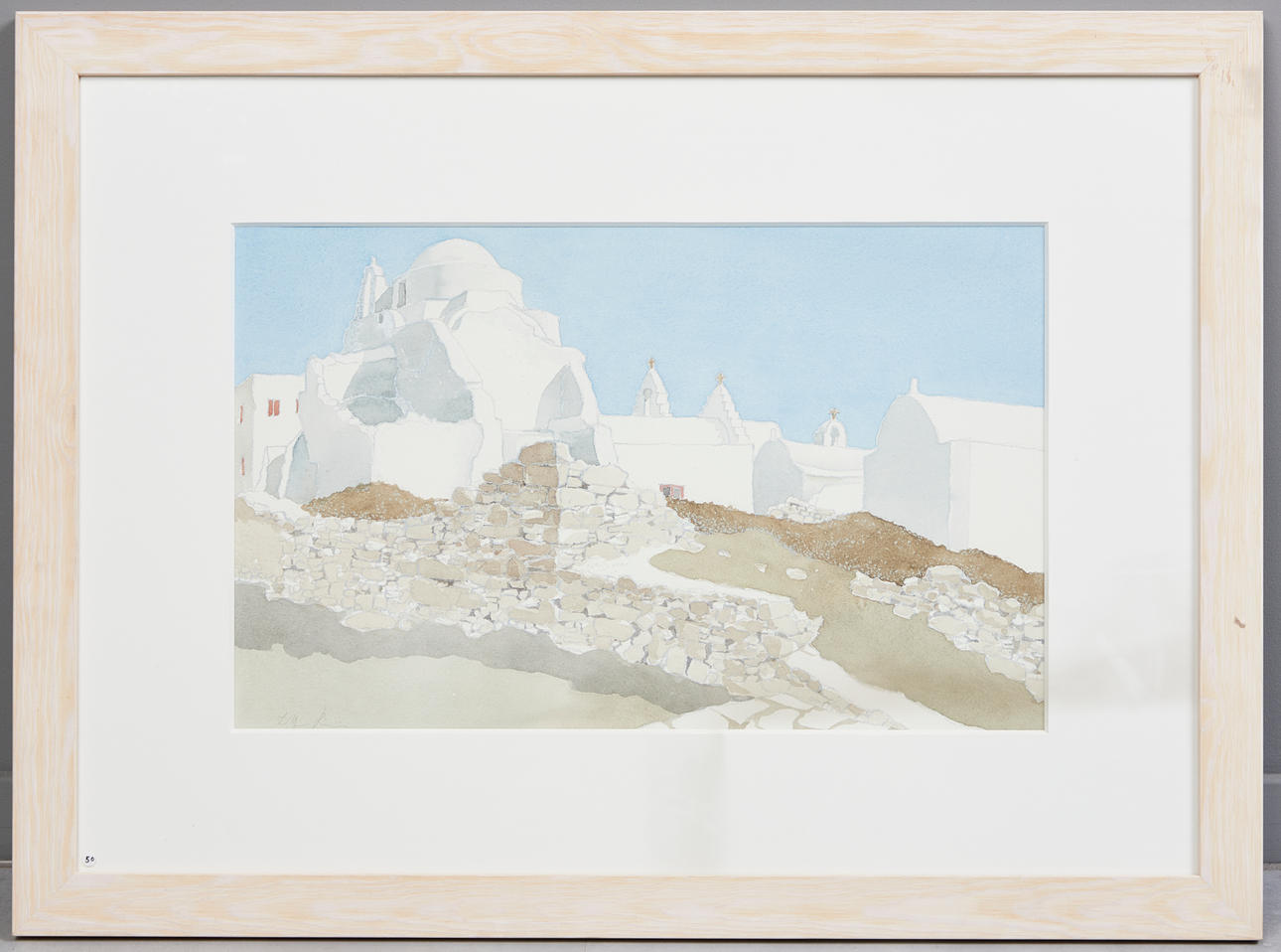 Lothar Braun (geb. 1931), Mykonos, Aquarell auf Papier, signiert, ca. 33 x 52 cm, hinter Glas und Passepartout gerahmt, mit Rahmen ca. 57 x 78 cm.