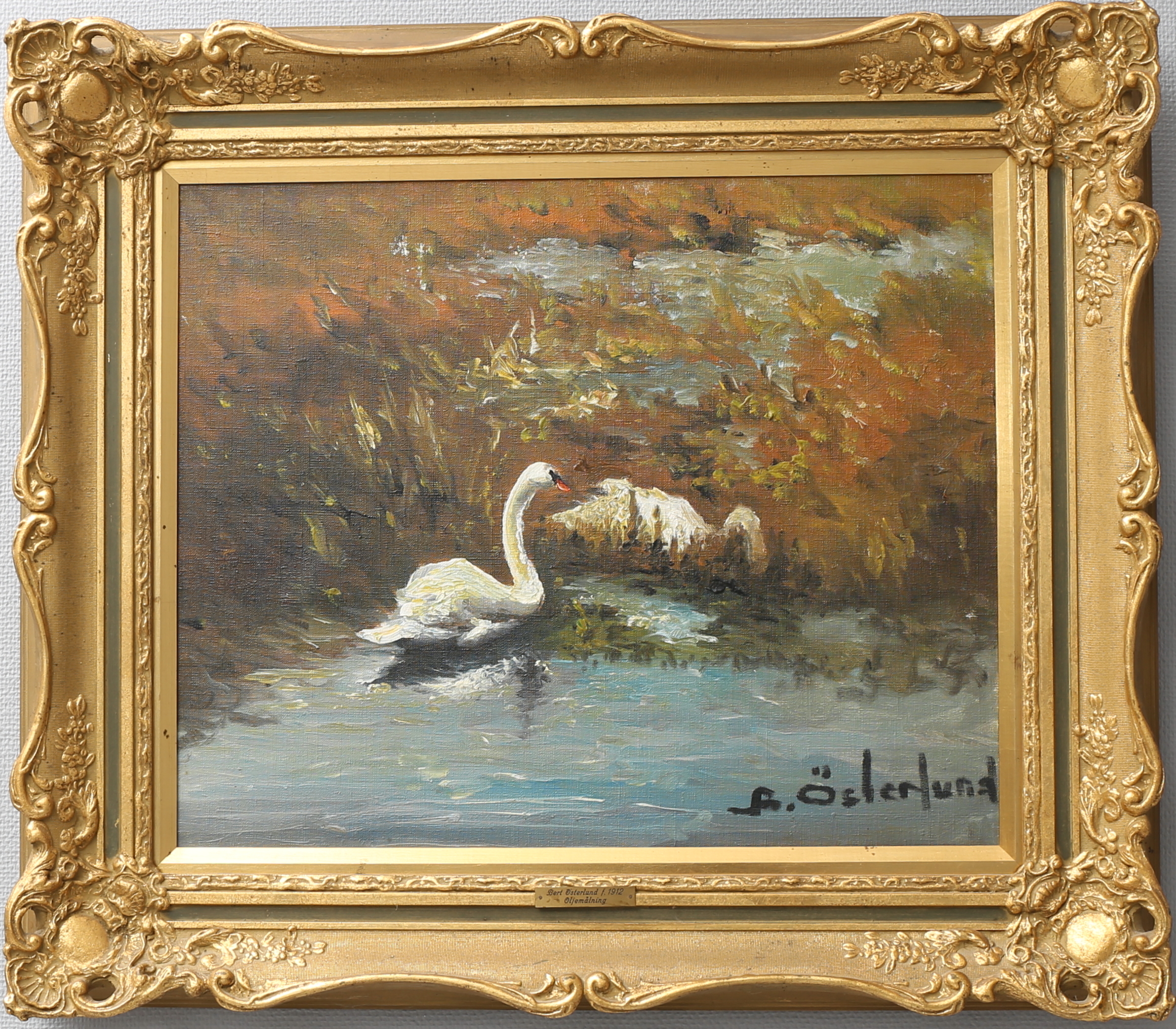 363045. BERT ÖSTERLUND. Schwäne. Öl auf Leinwand, signiert.