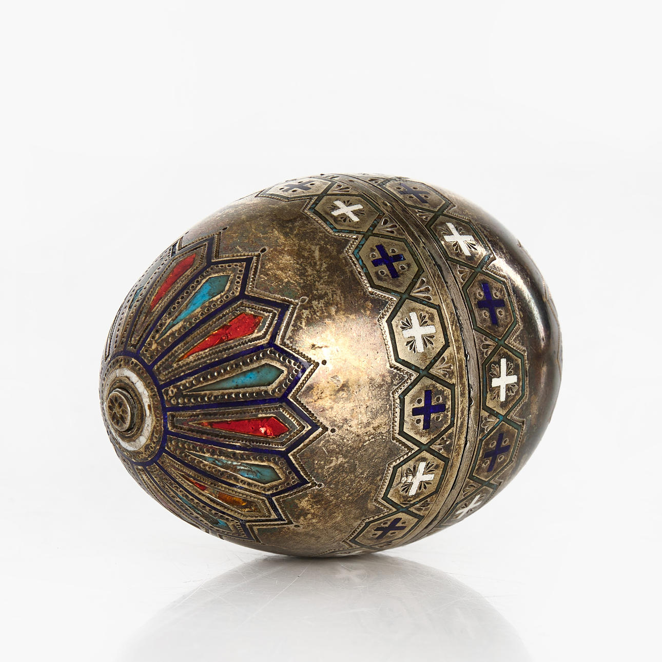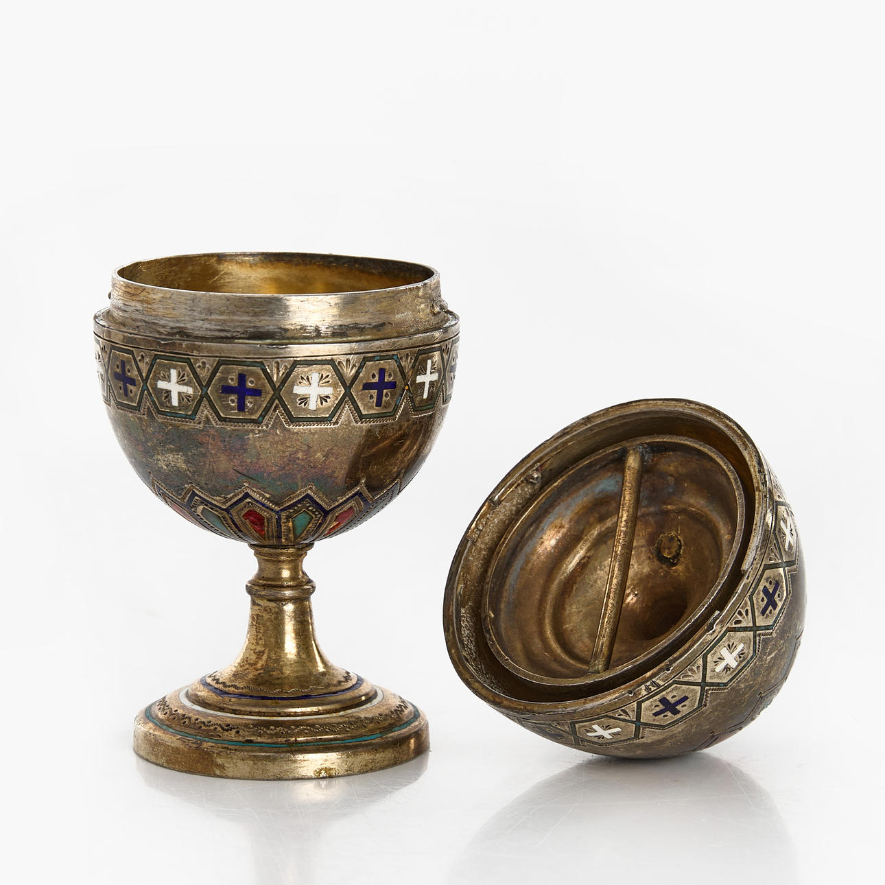 3635619. REISE-EIERBECHER, 1 Paar, Silber, Emaille, vermutlich Russland.