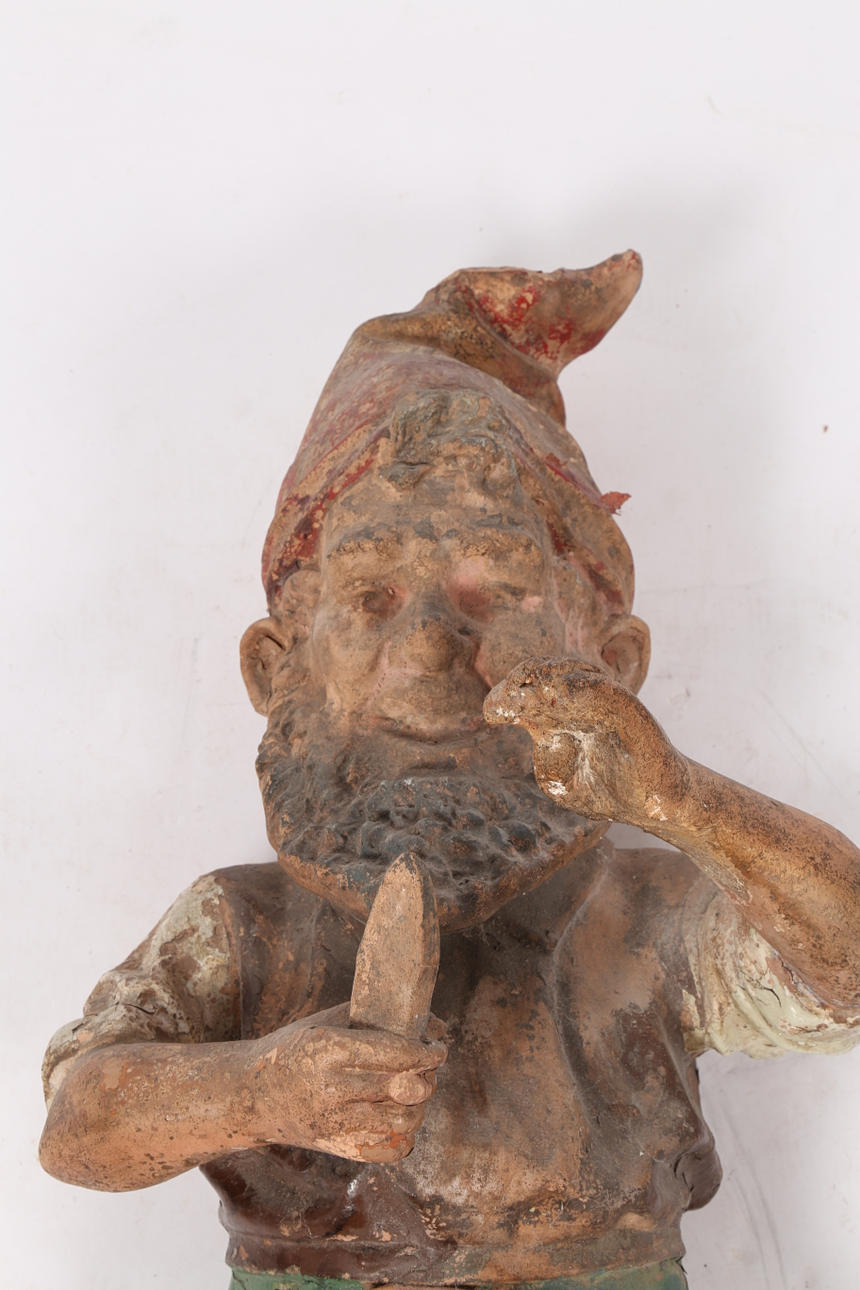 GARTENZWERG AUS METALL UND TERRAKOTTA.