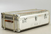 Aluminium in silbergrau. Ausgestattet mit einem Tragegriff aus Leder. Innen gefüttert, Einlegeboden mit Spanngurten.