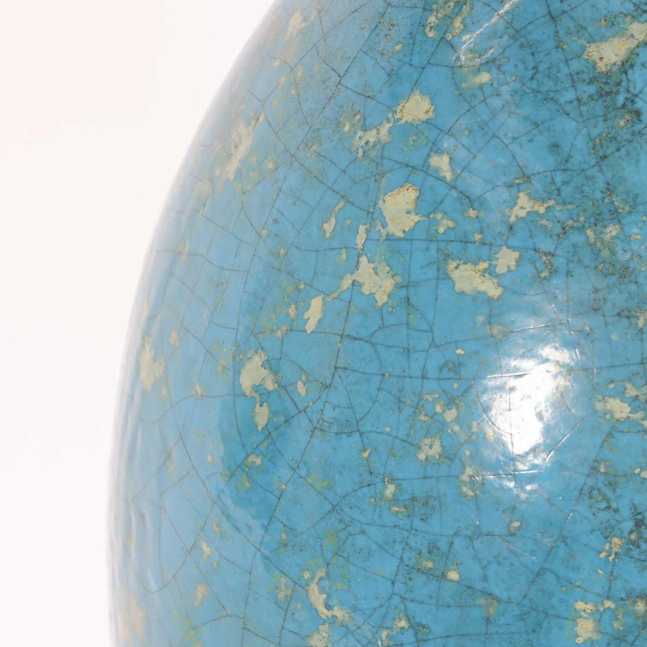 Türkisblaue und graugrüne, rissige Glasur, auf der Unterseite signiert, Höhe ca. 65 cm mit Sockel.