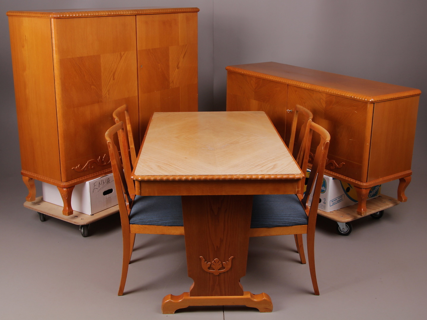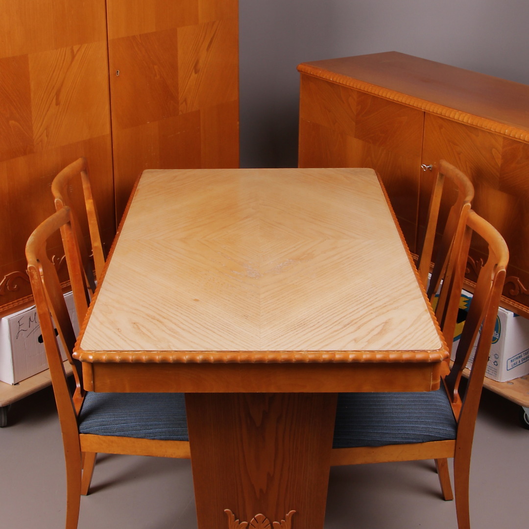 365204. WOHNZIMMERMÖBEL, 7-teilig, Birke, erste Hälfte des 20. Jahrhunderts.