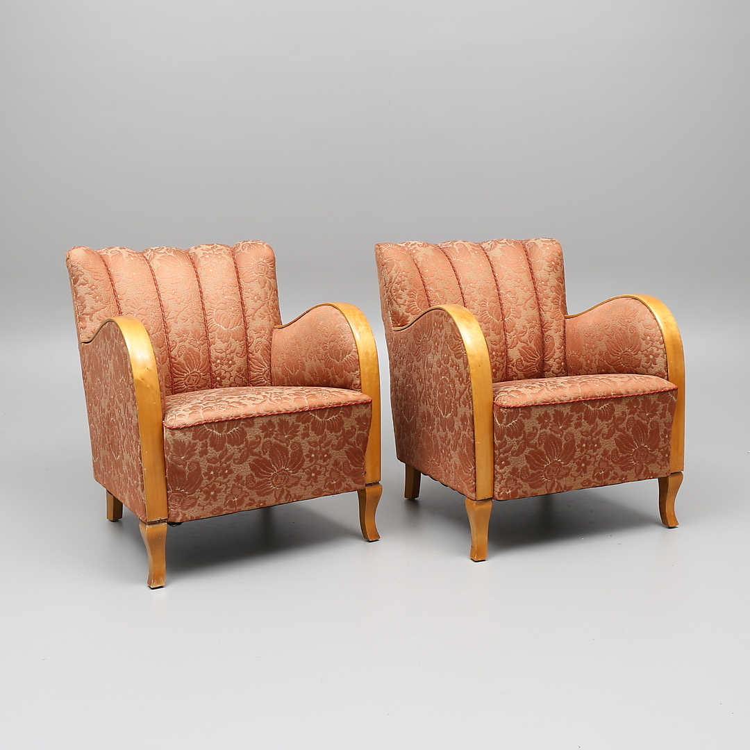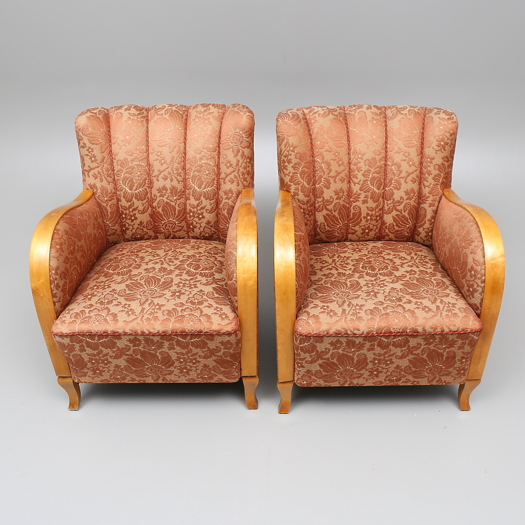 365707. ARMCHAIRS, ein Paar, Mitte 20. Jahrhundert.