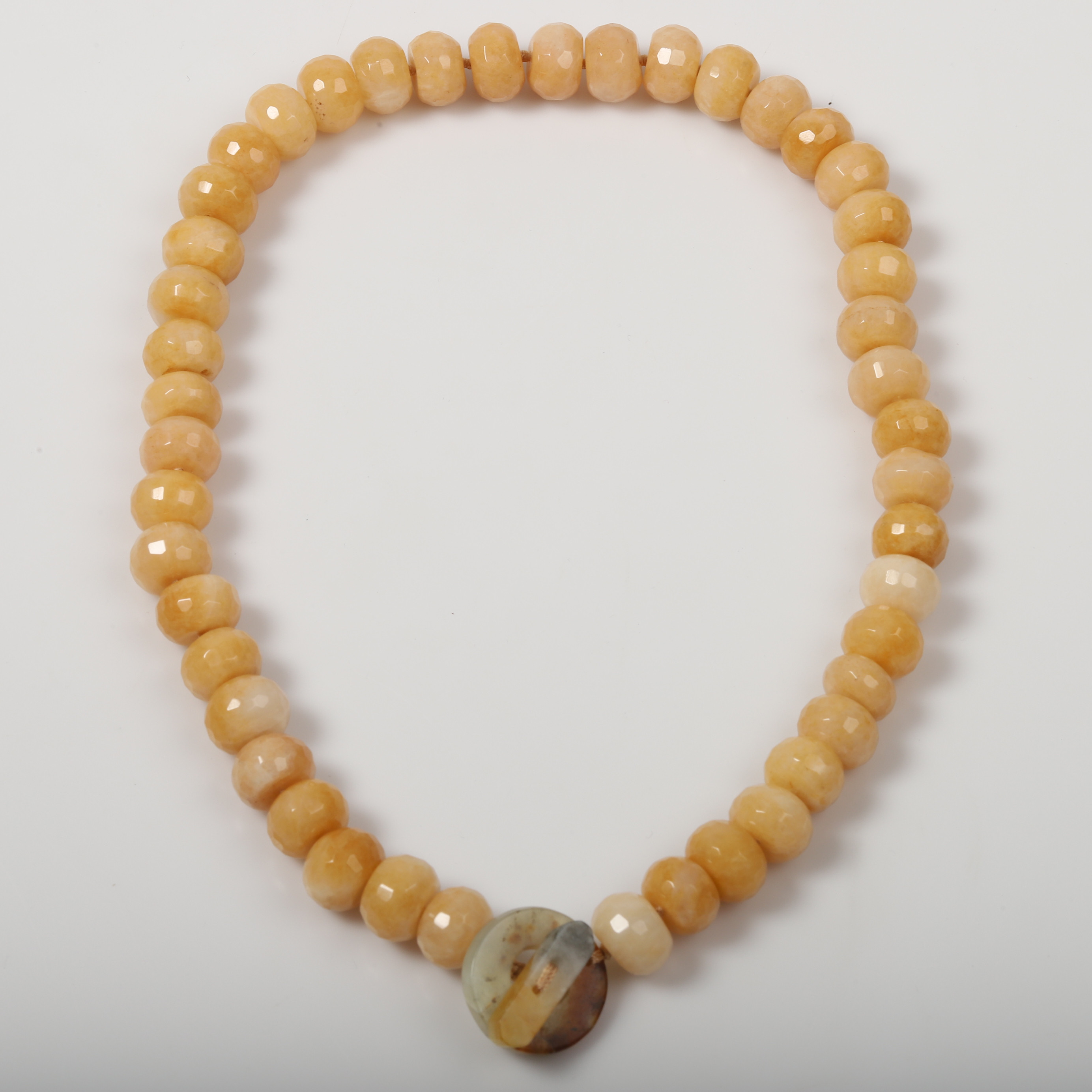 3657349. HALSKETTE, facettierte gelbe Jade.