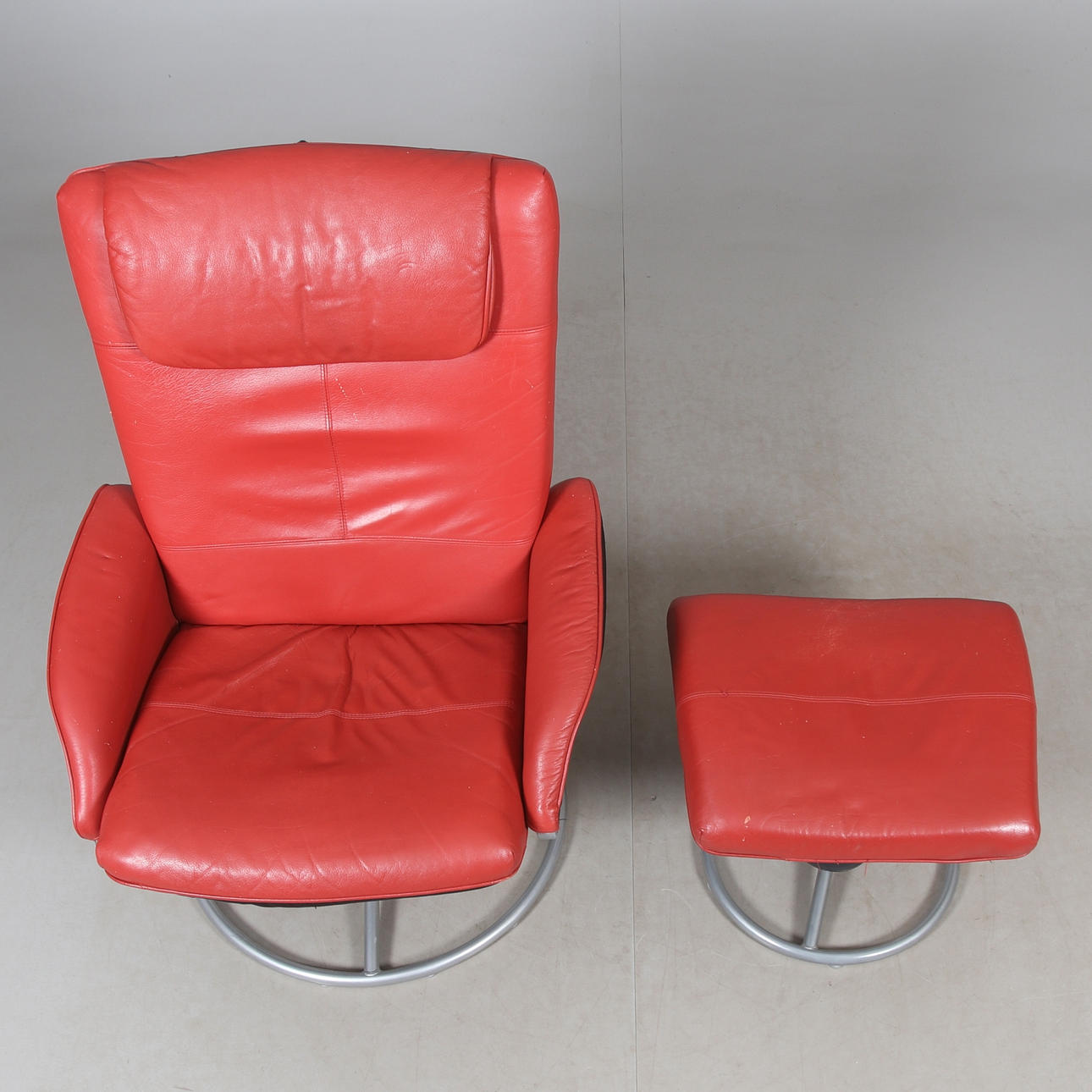 3660318. Sessel mit Fußbank, Leder „Malung“, IKEA.