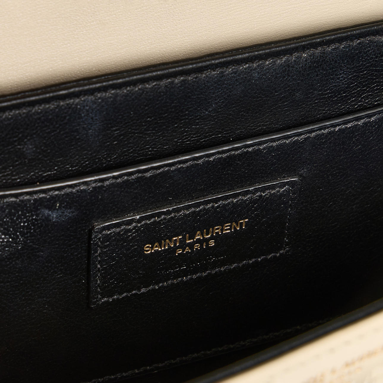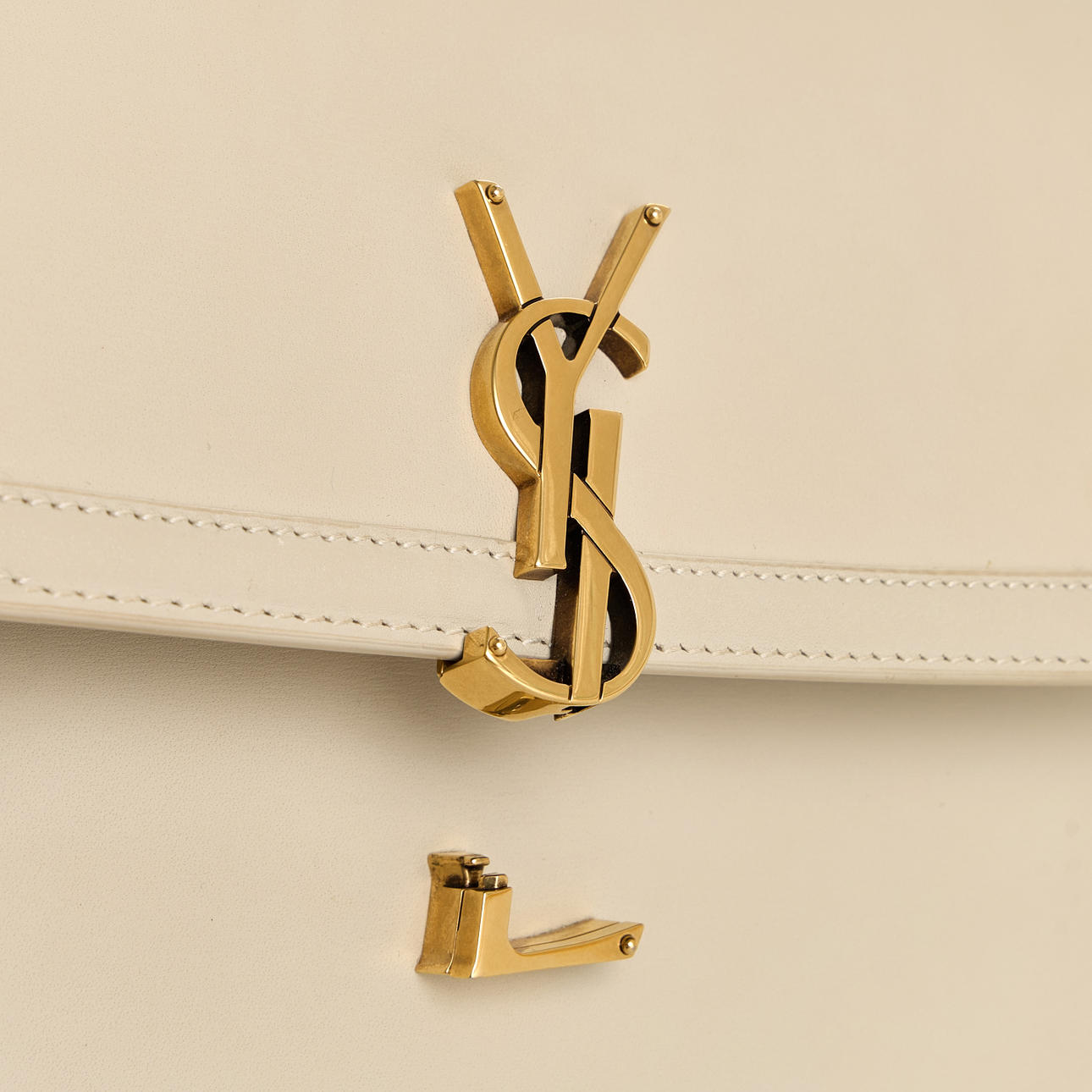 Das klassische YSL-Logo ziert die Vorderseite und dient als Schloss. Metallteile aus goldenem Messing.