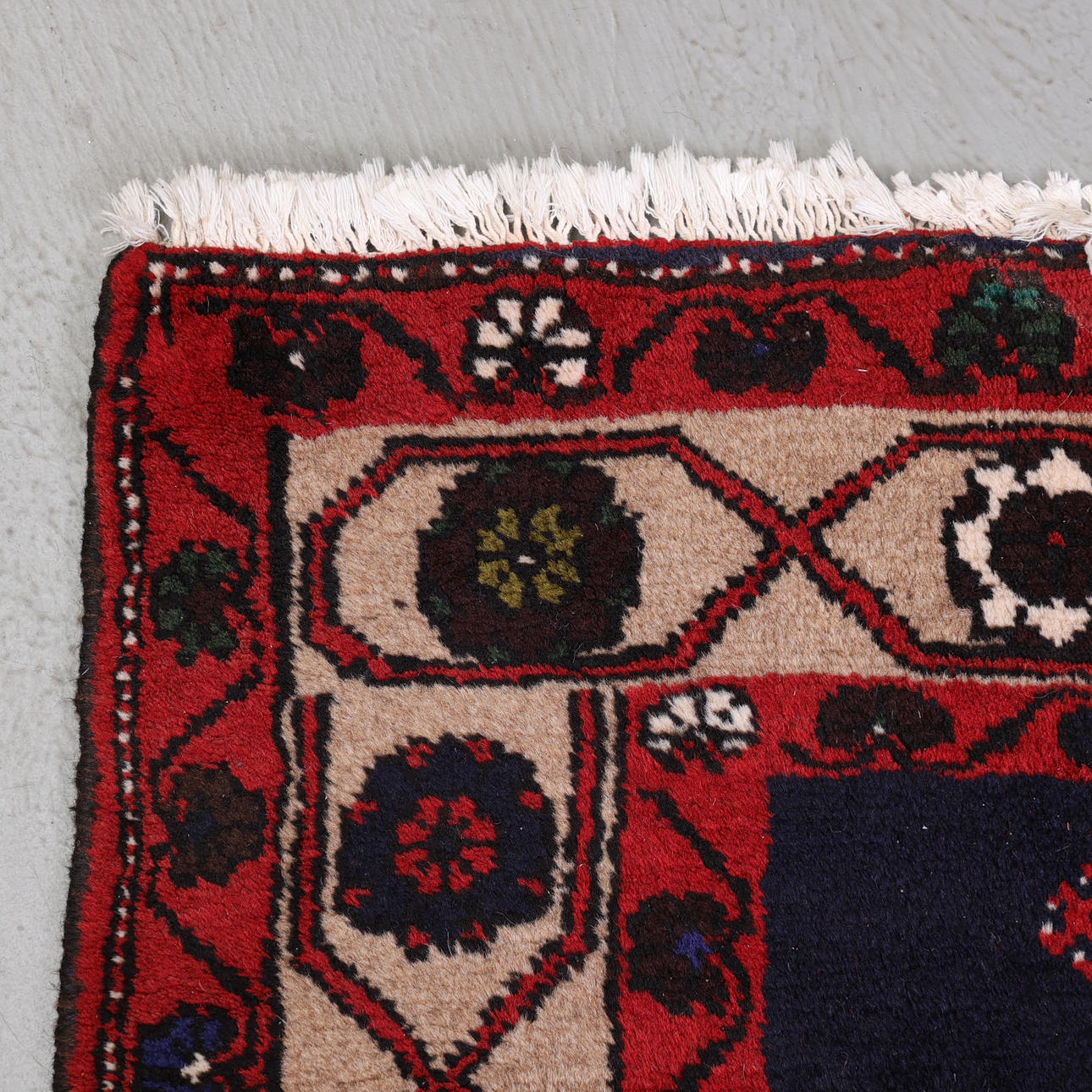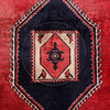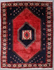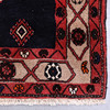 Handgeknüpfter Perserteppich aus Wolle auf Baumwollkette. Geometrisches Medaillonmuster hauptsächlich in Schwarz und Rot.