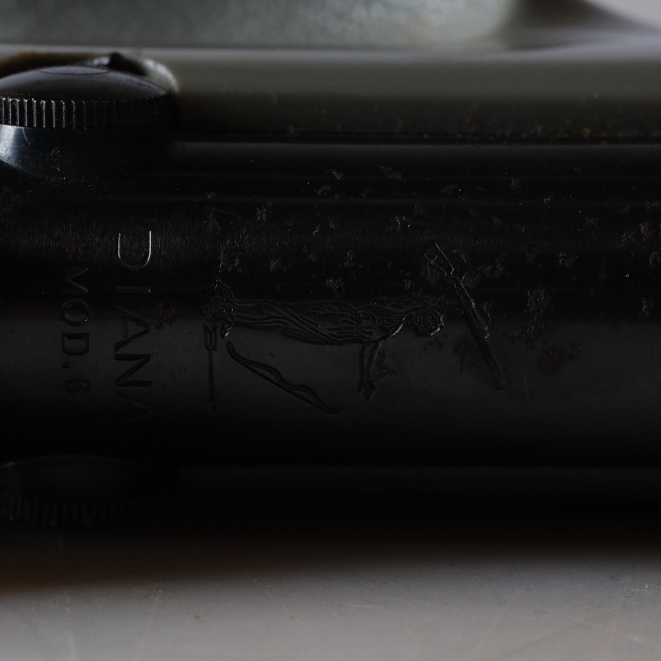 Verschleiß und Abnutzung. Riss am Vordervisier. Arbeitete zum Zeitpunkt der Katalogisierung. Es wird keine Funktionsgarantie gewährt.