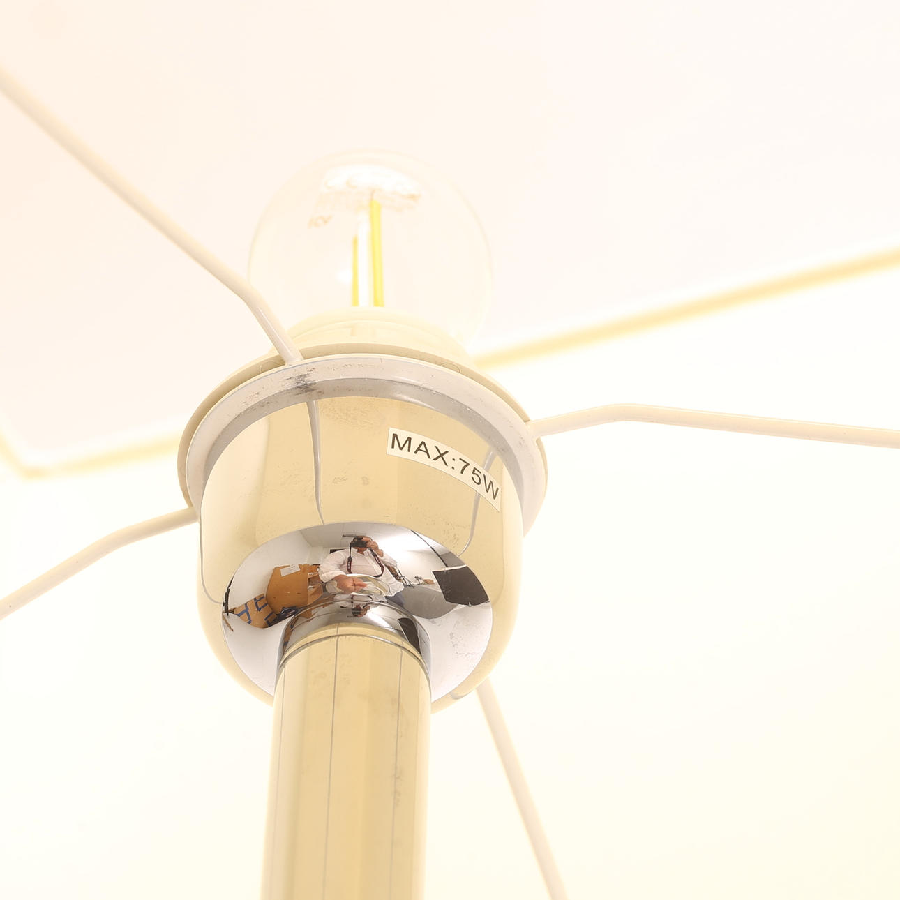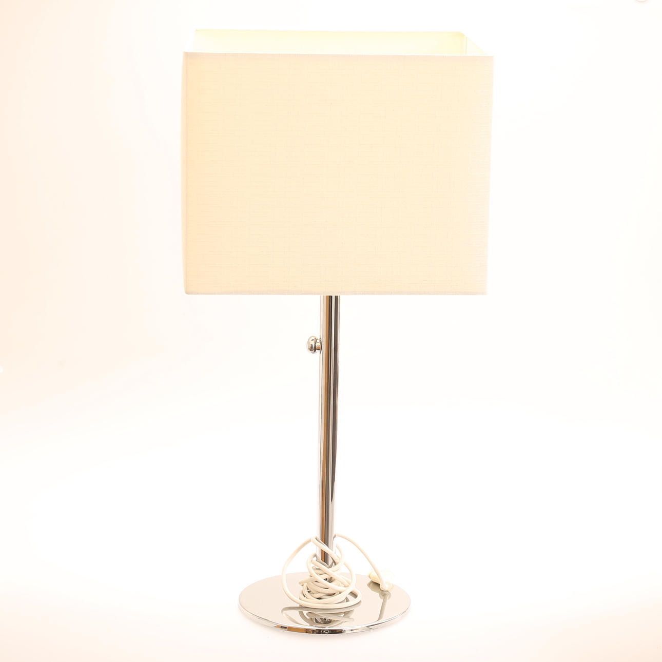 Stilvolle Lampe, verchromte Konstruktion mit cremeweißem Bildschirm. Dimmschalter.