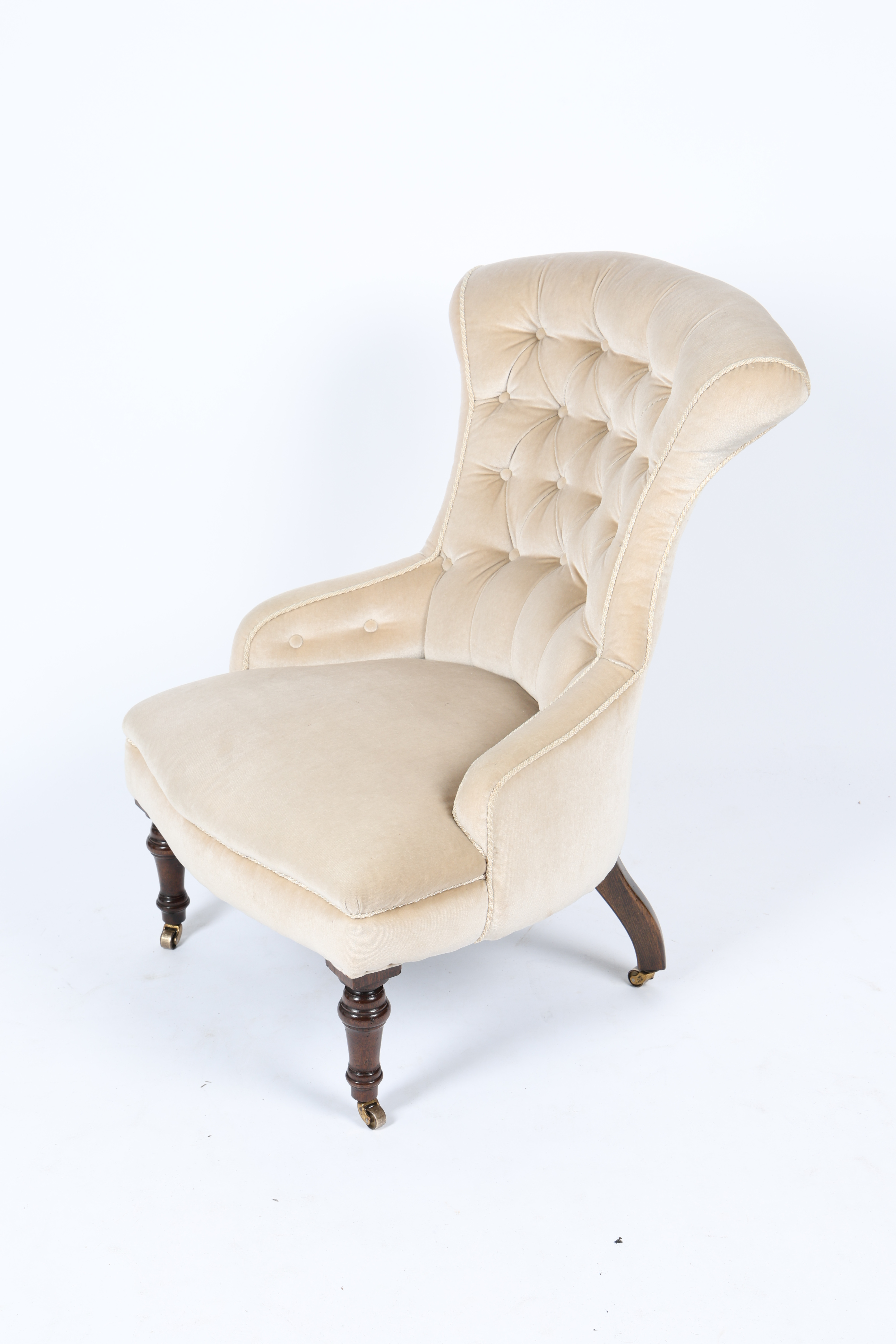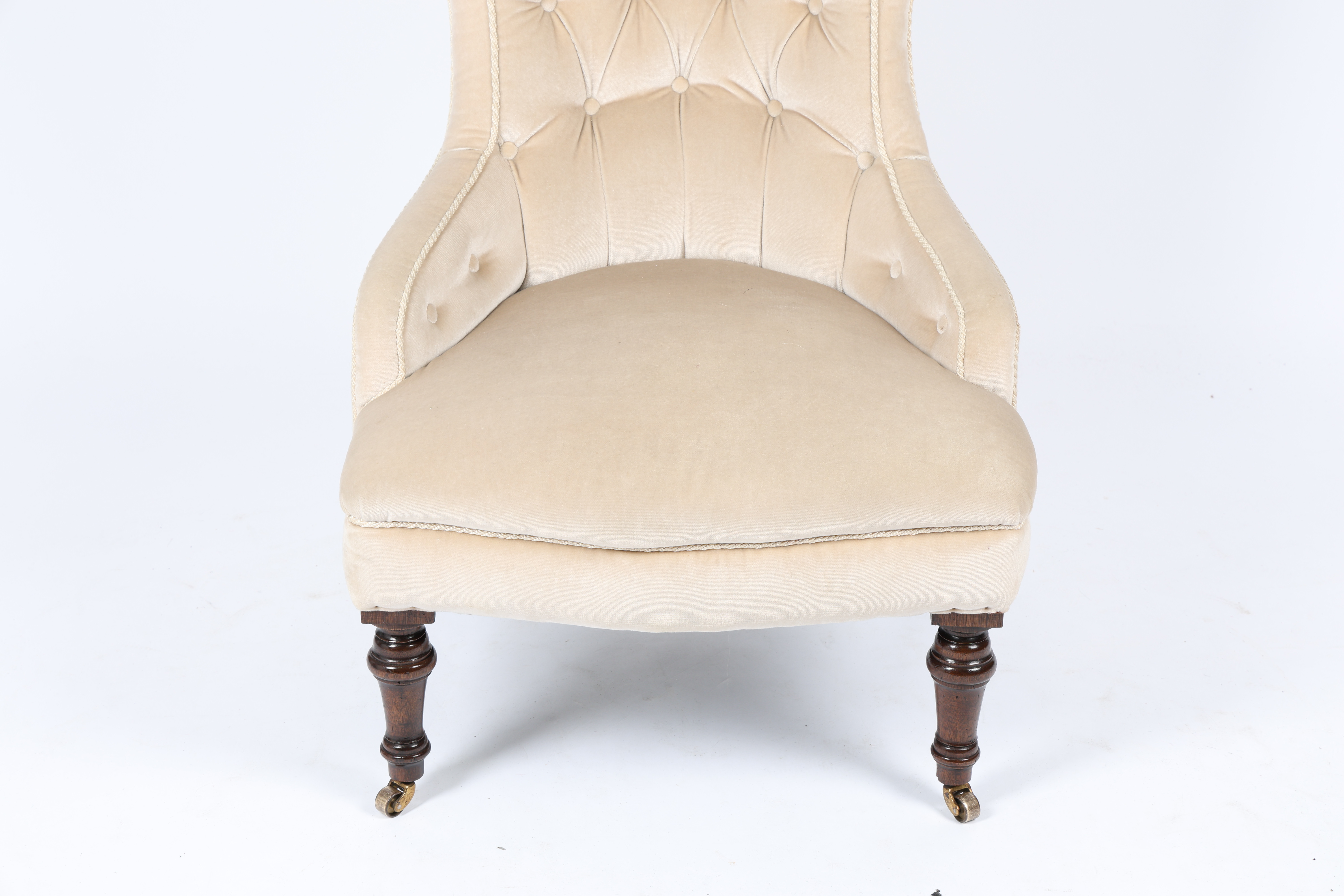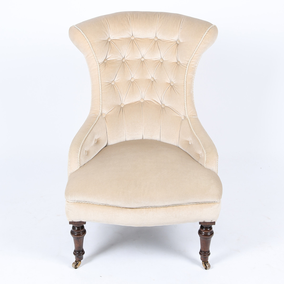 3662766. EIN VIKTORIANISCHER GEPOLSTERTER STUHL MIT KNOPFLEHNE.